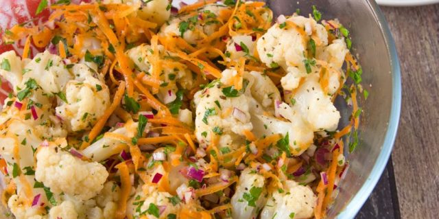/cdn.lifehacker.ru/wp-content/uploads/2017/11/cauliflower-carrot-salad_1511817727-e1511817764353-768x383.jpg" target="_blank">https://cdn.lifehacker.ru/wp-content/uploads/2017/...727-e1511817764353-768x383.jpg 768w, https://cdn.lifehacker.ru/wp-content/uploads/2017/...727-e1511817764353-247x123.jpg 247w, https://cdn.lifehacker.ru/wp-content/uploads/2017/...727-e1511817764353-310x155.jpg 310w, https://cdn.lifehacker.ru/wp-content/uploads/2017/...727-e1511817764353-640x319.jpg 640w, https://cdn.lifehacker.ru/wp-content/uploads/2017/...727-e1511817764353-600x300.jpg 600w, https://cdn.lifehacker.ru/wp-content/uploads/2017/...727-e1511817764353-800x399.jpg 800w, https://cdn.lifehacker.ru/wp-content/uploads/2017/..._1511817727-e1511817764353.jpg 900w" style="box-sizing: border-box; border: 0px; vertical-align: middle; max-width: 100%; height: auto; width: 740px;" title="Салат с маринованной цветной капустой и морковью" width="630" />В небольшом сотейнике доведите до кипения уксус, масло и воду. В большую кастрюлю поместите разобранную на соцветия цветную капусту, лавровый лист, нарезанный тонкими пластинками чеснок и лимонный перец.