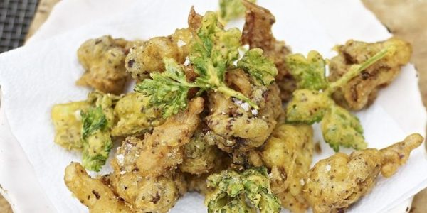 Готовую капусту переложите на бумажное полотенце, чтобы стёк лишний жир. Посолите, сбрызните лимонным соком и украсьте петрушкой в кляре.
