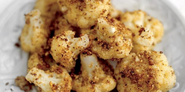 Для приготовления этого блюда вам нужно разрезать капусту на соцветия, перемолоть в кухонном комбайне и поджарить на оливковом масле. Затем выключить огонь и накрыть сковороду фольгой, оставив капусту доходить в течение 5–6 минут. После этого капусту можно посолить и добавить туда грецких орехов, миндальных хлопьев, зелени, кукурузных и гранатовых зёрен. В принципе, к этой капусте можно подать практически любое дополнение, которое вы считаете уместным. К примеру, мелко нарезанные томаты, острый перец чили и кукурузу.