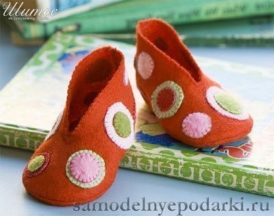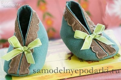 Если вы пороетесь в своем шкафу, то наверняка найдете несколько вещей из плотной шерстяной ткани, которые вы не носите. Самое время совместить приятное с полезным – сшейте малышу своими руками такие милые пинетки и освободите место в шкафу. Украсить пинетки можно аппликацией, ленточками, бусинками. Проявите фантазию и пинетки для вашего малыша будут не только теплыми, но и нарядными.