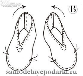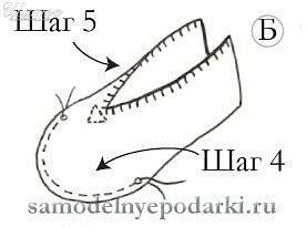 Шаг 6. Сшейте пяточки (Рисунок В)