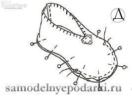 Шаг 2. Укрепите то место на верхней части пинеток, где кончается разрез. Подложите с изнаночной стороны кусочек мягкой кожи или другой плотный материал и пришейте (Рисунок А).