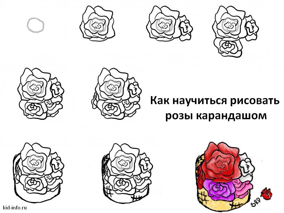 Эти инструкции поэтапного рисования посвящёны тому, как нарисовать розу поэтапно - более 20 вариантов как рисовать розу.