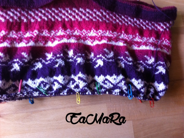 Для вязания контрольного образца набрать на спицы 30 петель и вязать 30 рядов лицевой гладью.Я советую связать образец жаккардом, т.к. плотность жаккарда будет отличаться от лицевой глади.