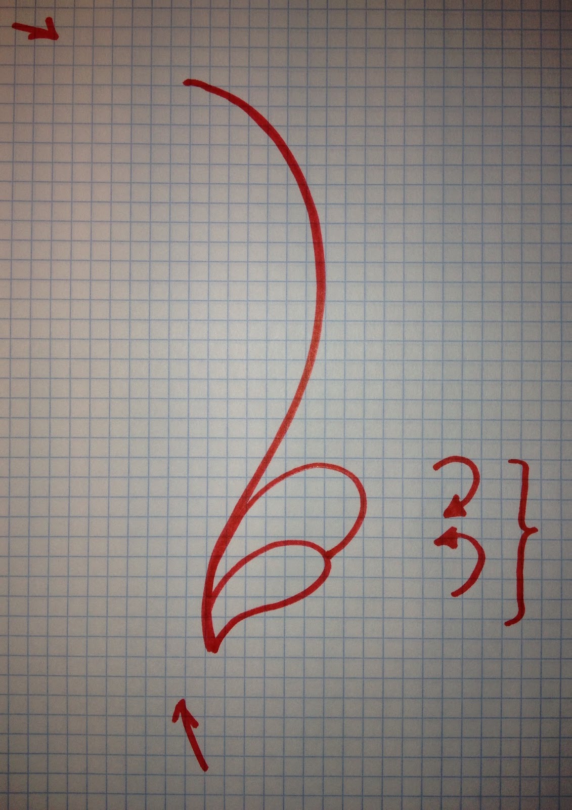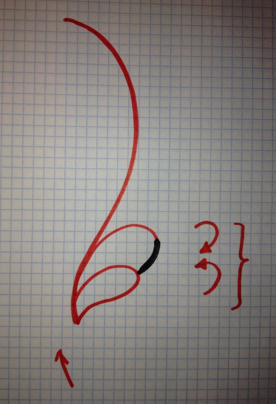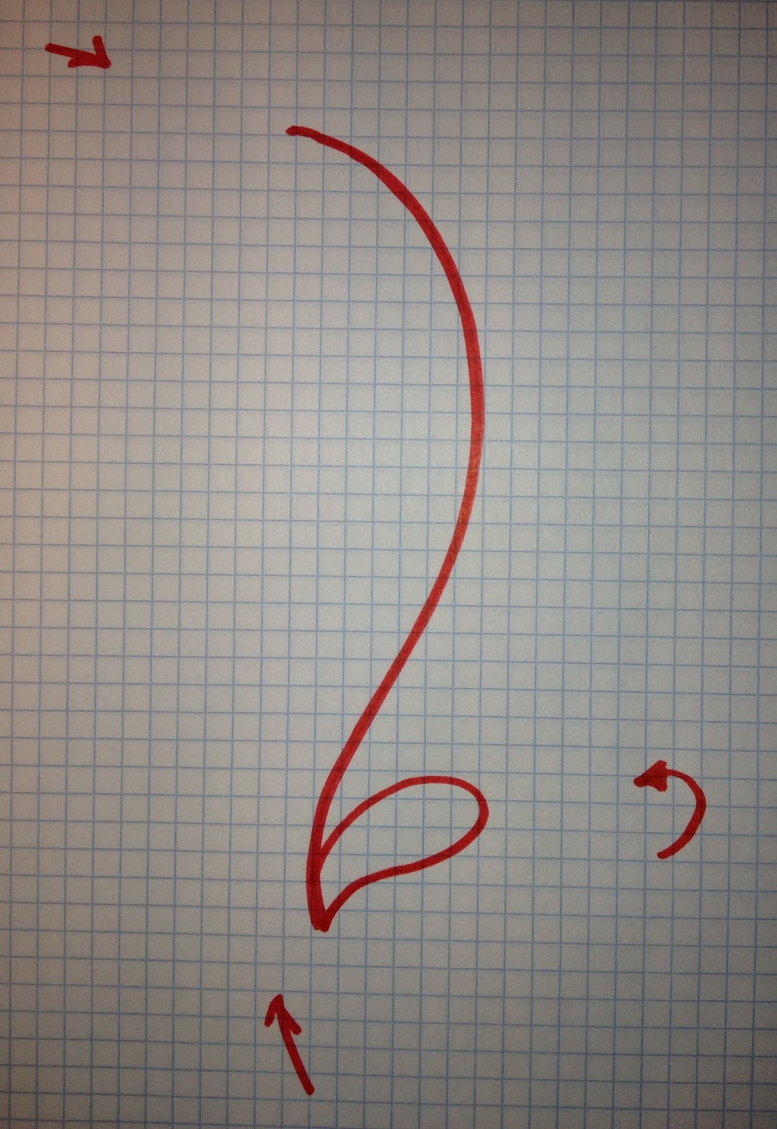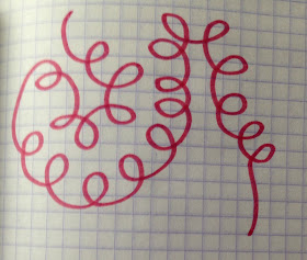 5) Перья.Перья - это те же "червячки"-"спиральки" из дуг, но со стеблем. И второе отличие: если у червячков дугу можно упирать в любое место предыдущей дуги, то для перьев важно УТКНУТЬ в предыдущий листок и ВЕРНУТЬСЯ НАЗАД по нарисованной линии.