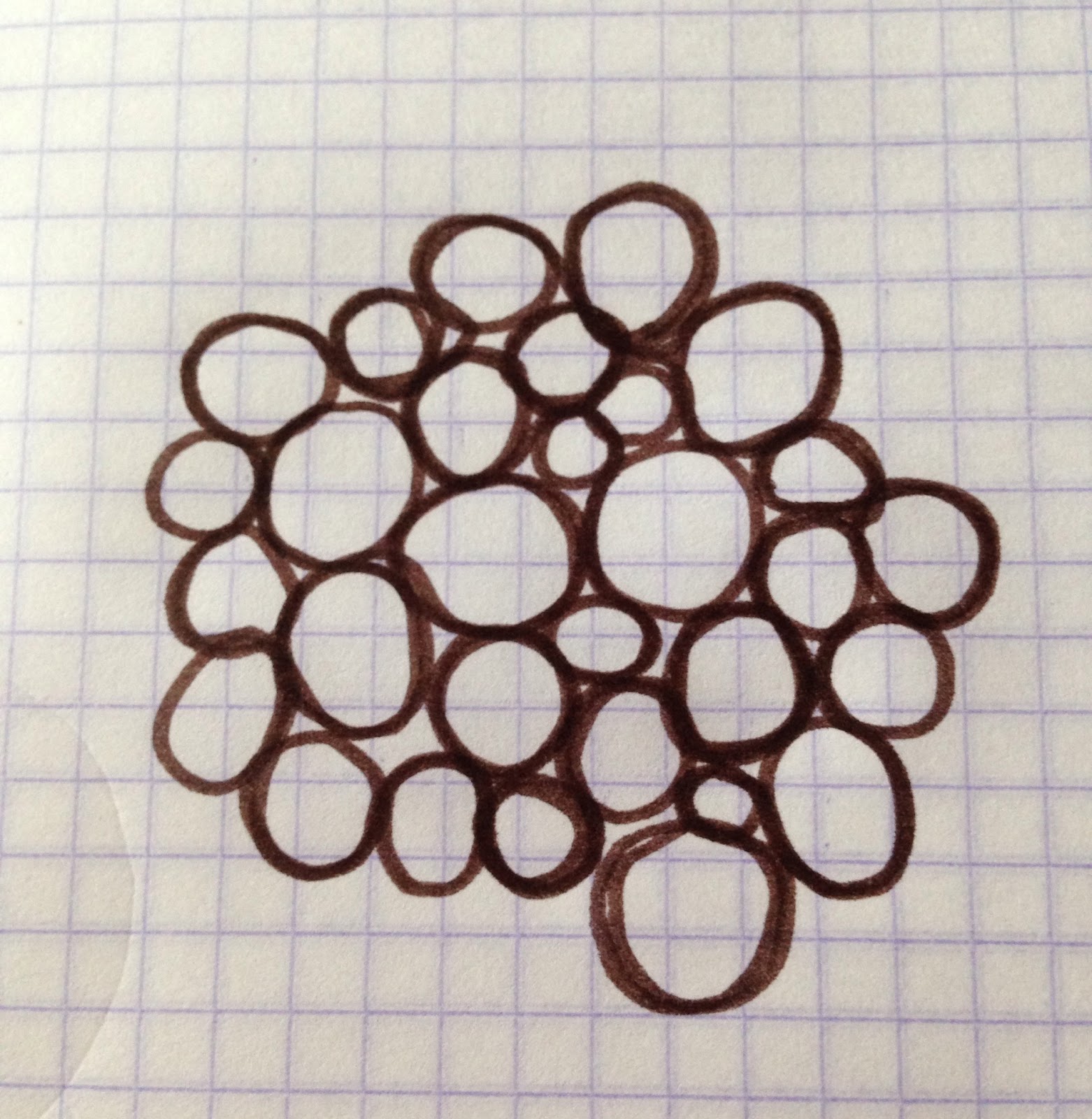 Чем хорош рисунок? Камушки могут быть разного размера, неровные (в природе круглых камушков не бывает). Некоторые камушки могут быть обведены один раз, некоторые - два, а некоторые - три или даже четыре раза. И это даже хорошо: рисунок приобретает естественность и глубину.