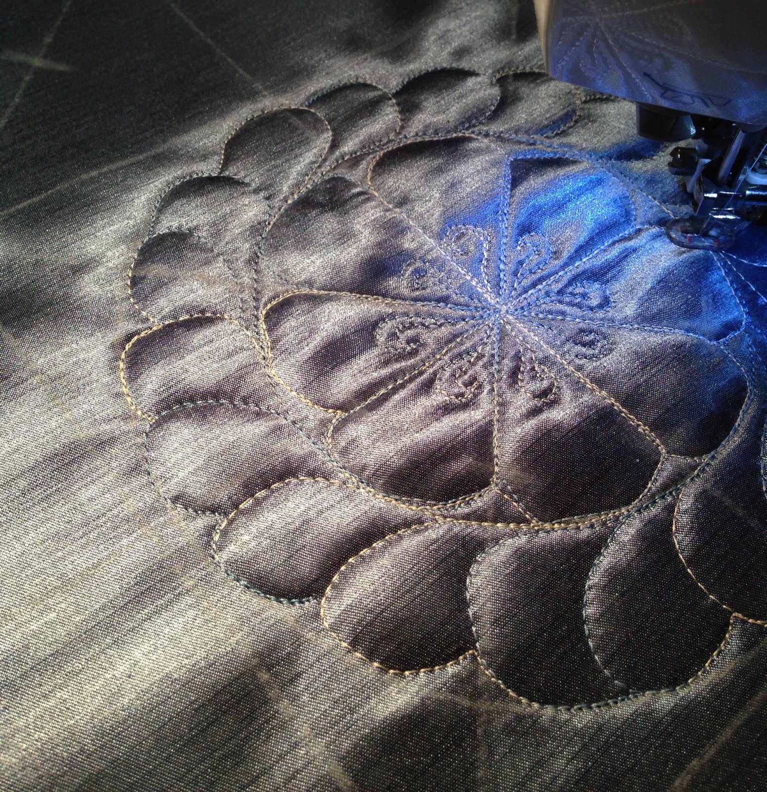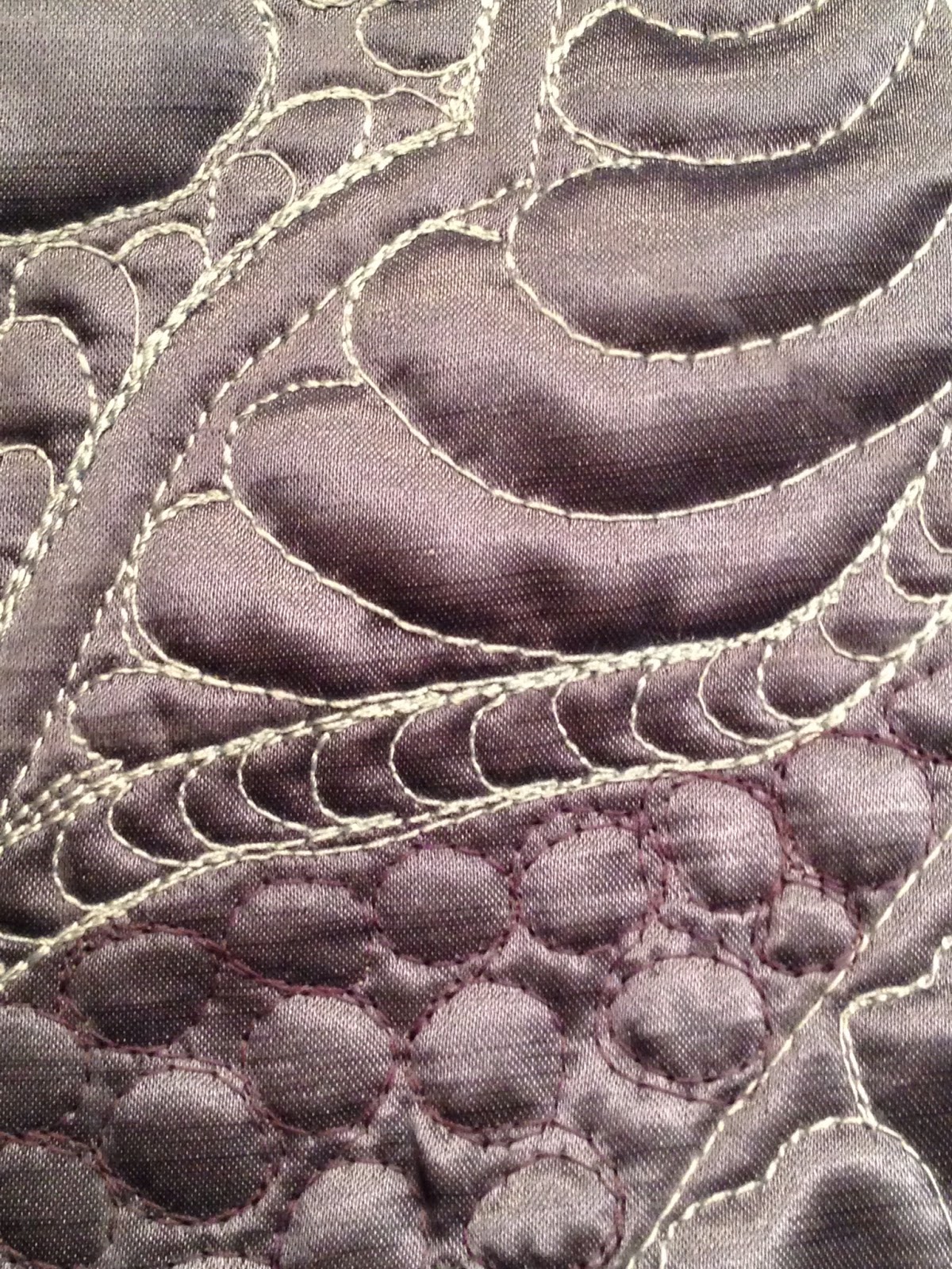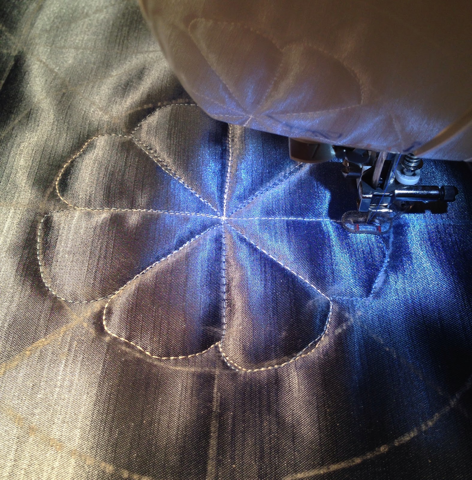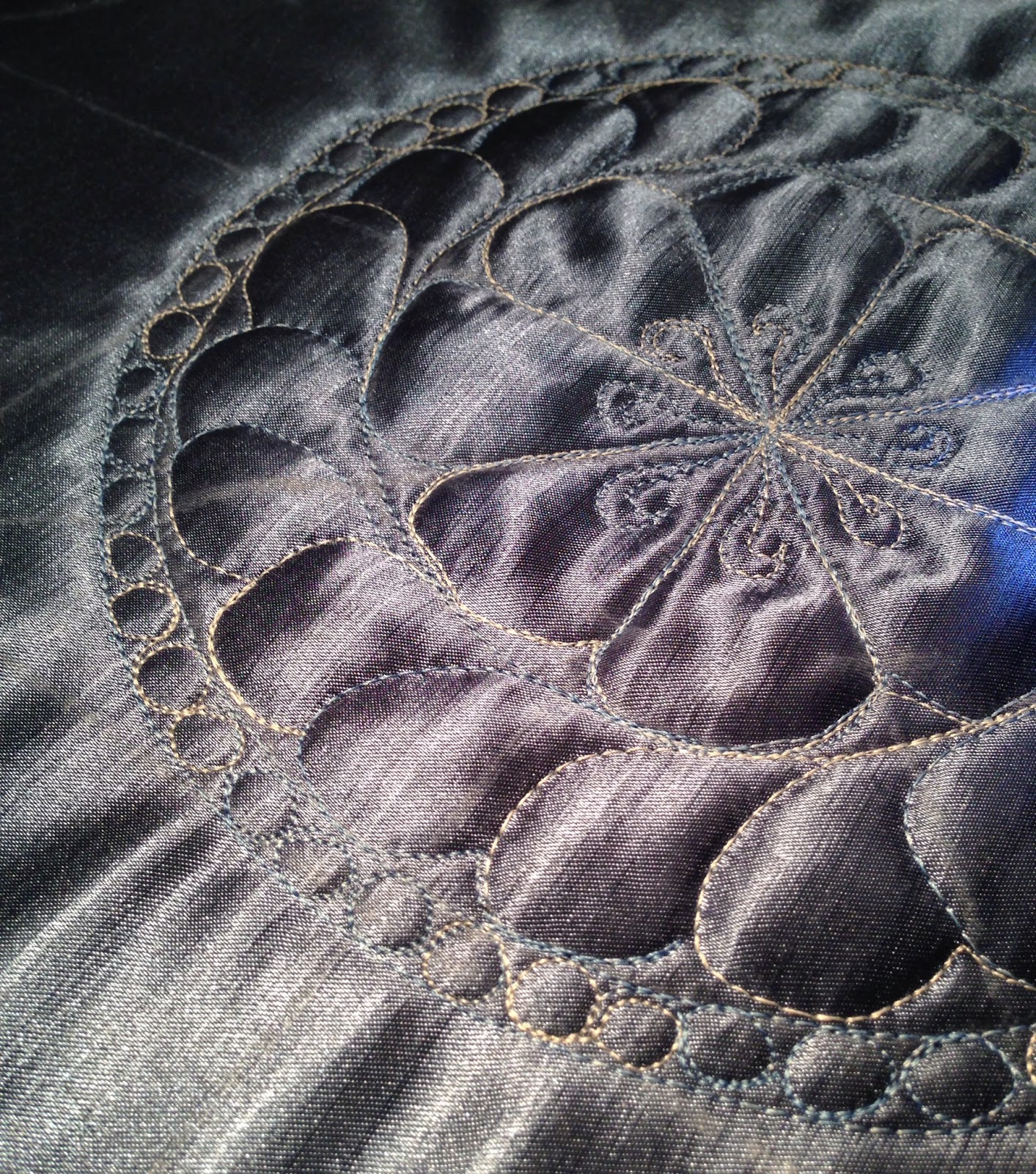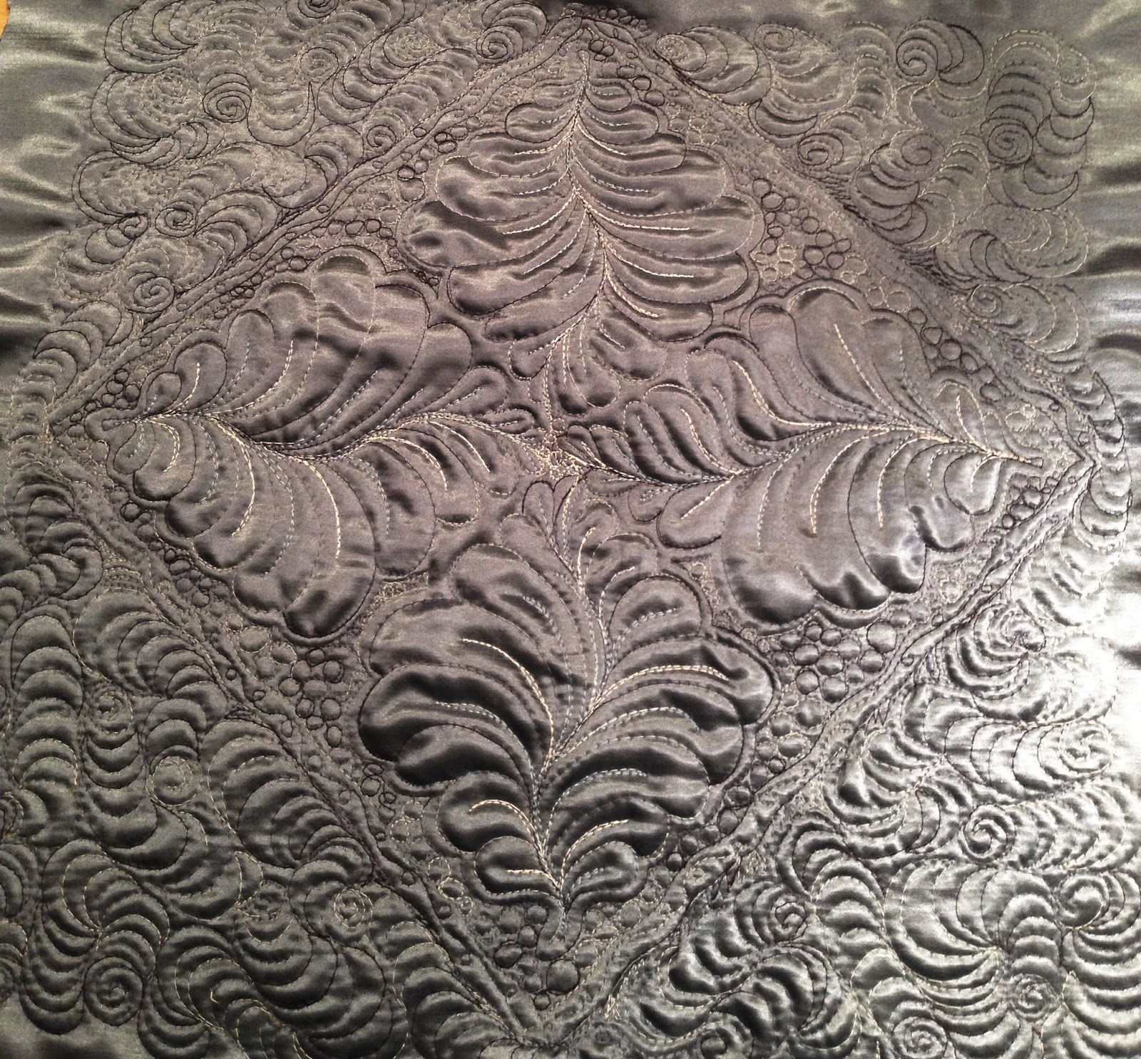 Когда от сердца отхлынет, и мысли в мозгах займут свои полочки, - можно подумать, куда бы приспособить получившийся квилт со стёжкой? Если заготовку обрамить формой, то она станет законченной и прибавит несколько баллов.
