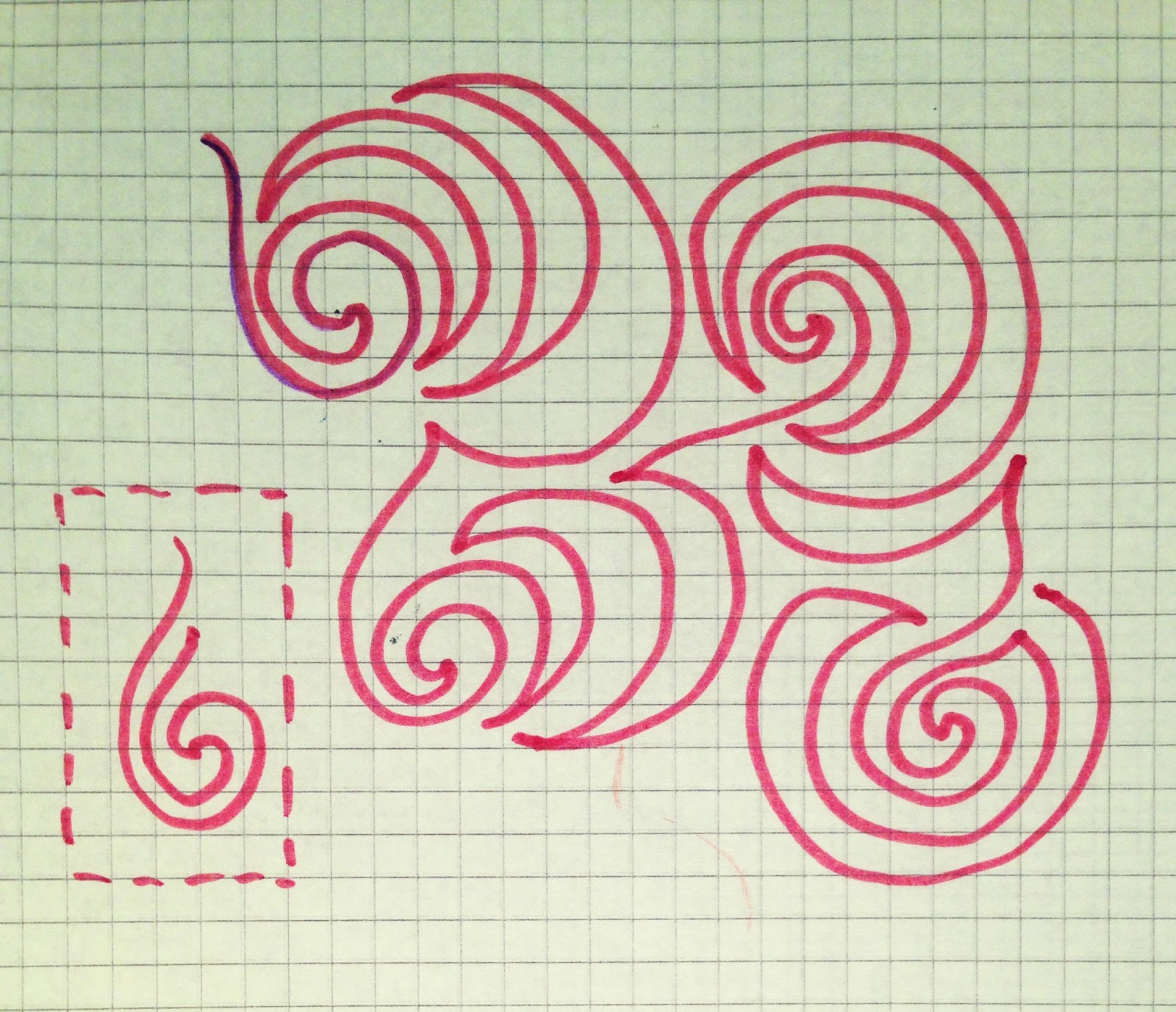 Так что можно пойти по простому пути: выбрать какой-нибудь раппорт (середину, сердцевину) рисунка, а далее всю площадь заполнить разными по размеру дугами. И смело прокладывать их в разном направлении.
