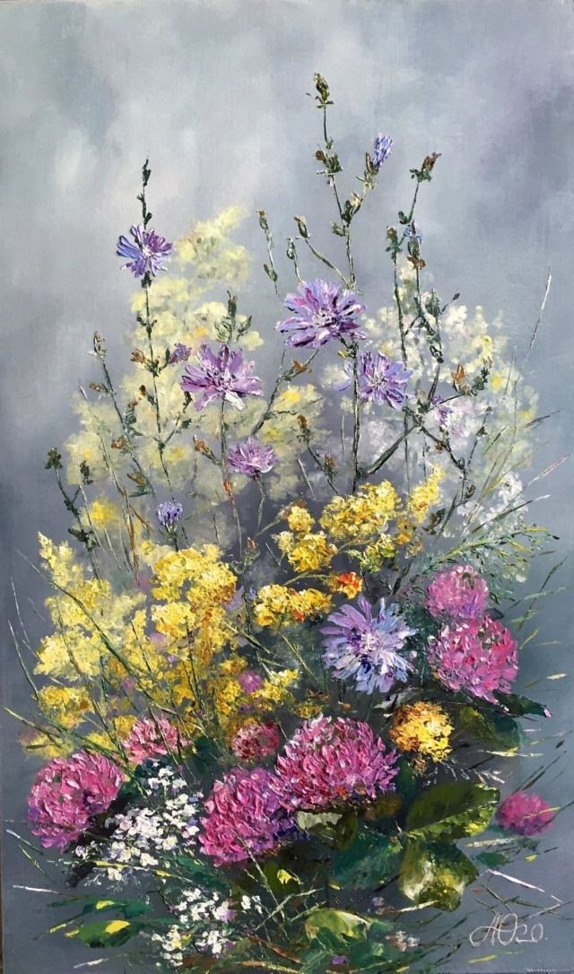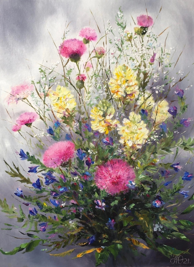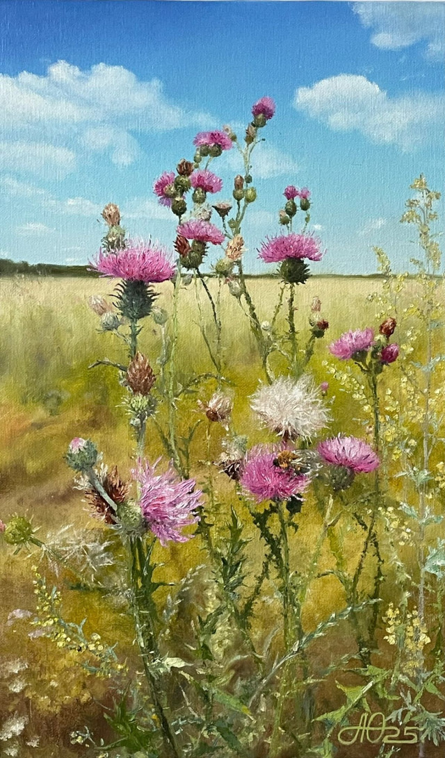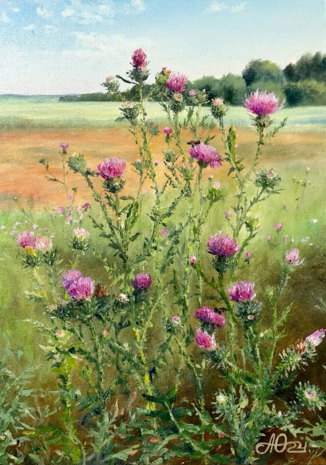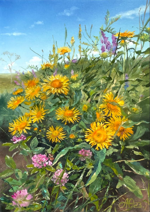 С самого детства родители привили мне любовь к природе и родному краю, что определило дальнейший путь и тему в изобразительном искусстве "Ботаника цветов Южного Урала". На моих полотнах всегда солнце и лето, а так же любимые шмели, потому мой слоган - "Помогаю зимовать", что значит, если смотреть на летнюю картину в холодное время года, то можно окунуться в лето и согреться.