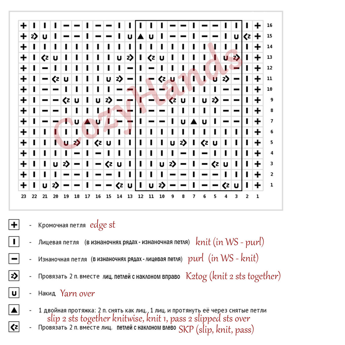 Далее повторять вязание с 1 по 16 ряд.