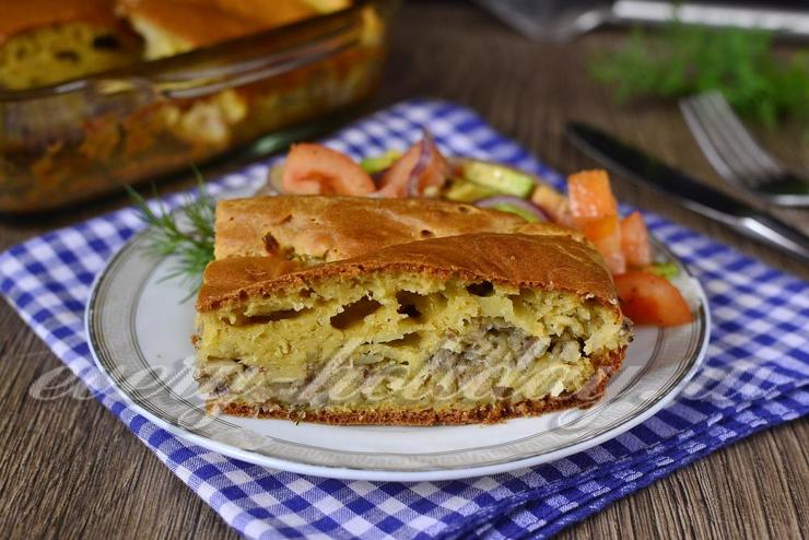 Заливной пирог с мясом и картошкой можно подать на обед или взять с собой на пикник или на работу, так как он хорошо держит форму и не разваливается.