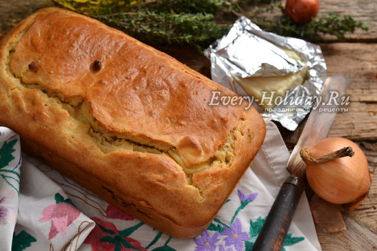 Самый вкусный луковый пирог заливной с плавленым сыром готовим из простого теста на сметане. Для начинки подойдет репчатый лук и небольшой пучок зелёного лука.