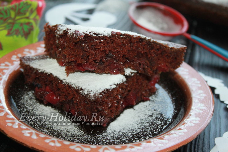 Шоколадный пористый пирог с вишней понравится всем домашним и вызовет желание у гостей записать секретный состав.