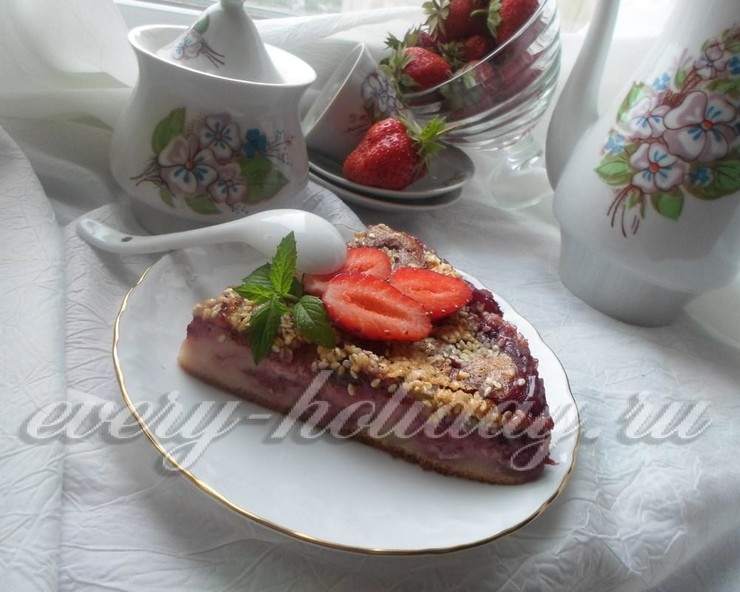Такой яркий пирог обязательно привлечет к себе внимание и быстро соберет всех за чашечкой чая.