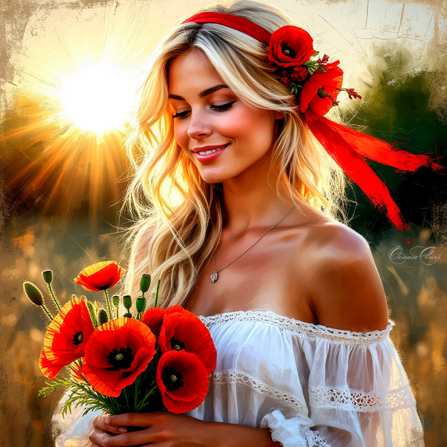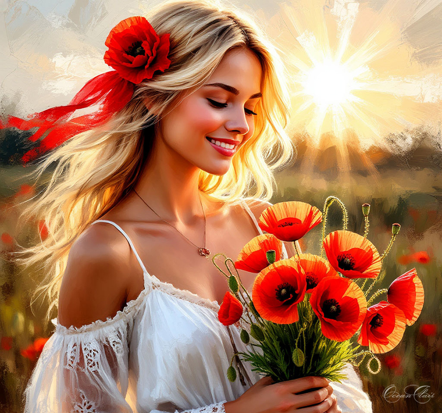 Красные маки я в поле сорву, к сердцу прижму рукою.