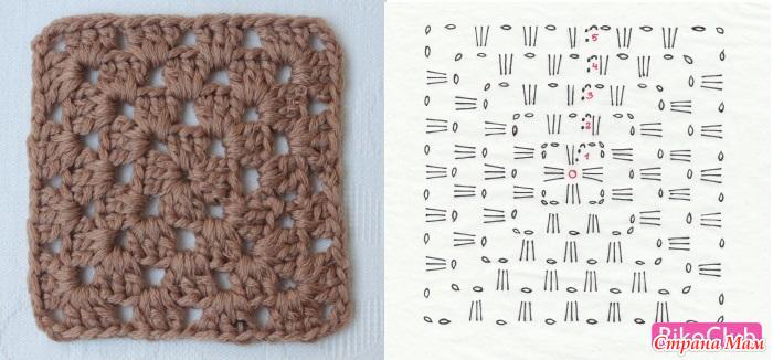 Схема 1 на фото 2 — основа основ, можно сказать истинный «Бабушкин квадрат» («Granny Square») в своем первоначальном виде.