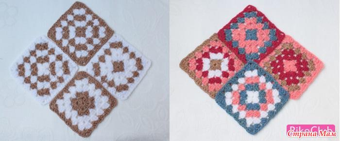 Выше на фото 2 и 3 представлены однотонные образцы Бабушкиного квадрата.