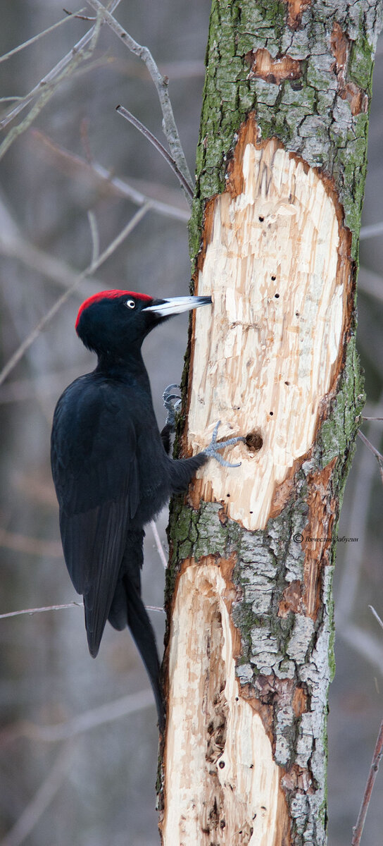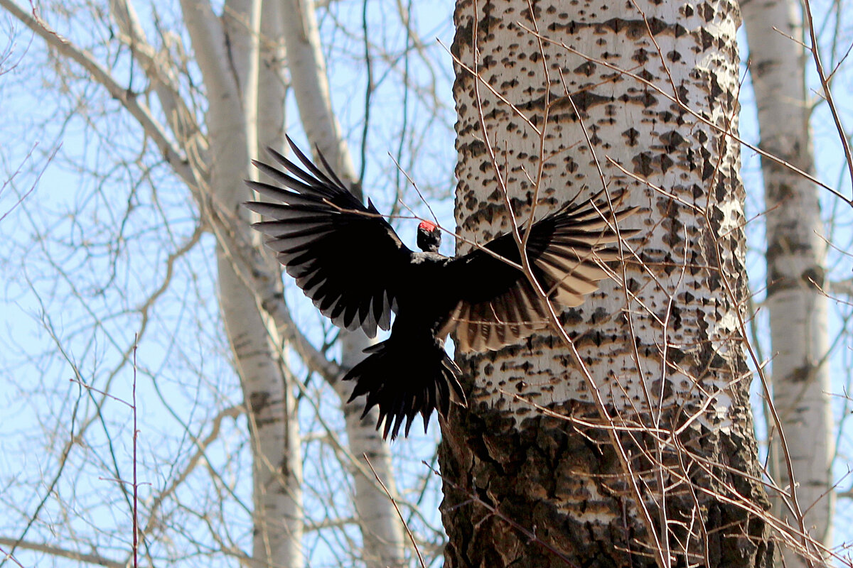 Крик желны неприятен человеческому уху… Чёрный дятел считается самым крупным в своём семействе и самым разрушительным! Красная продольная полоса на иссиня-чёрном оперении делает его образ узнаваемым. А повадки у желны такие, что навсегда запомнишь!