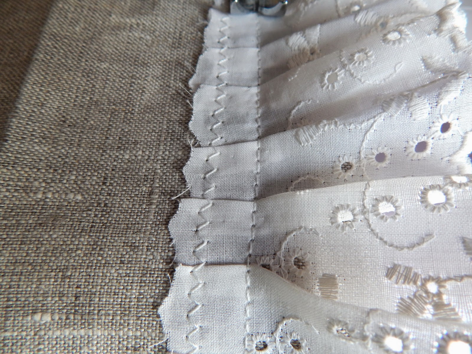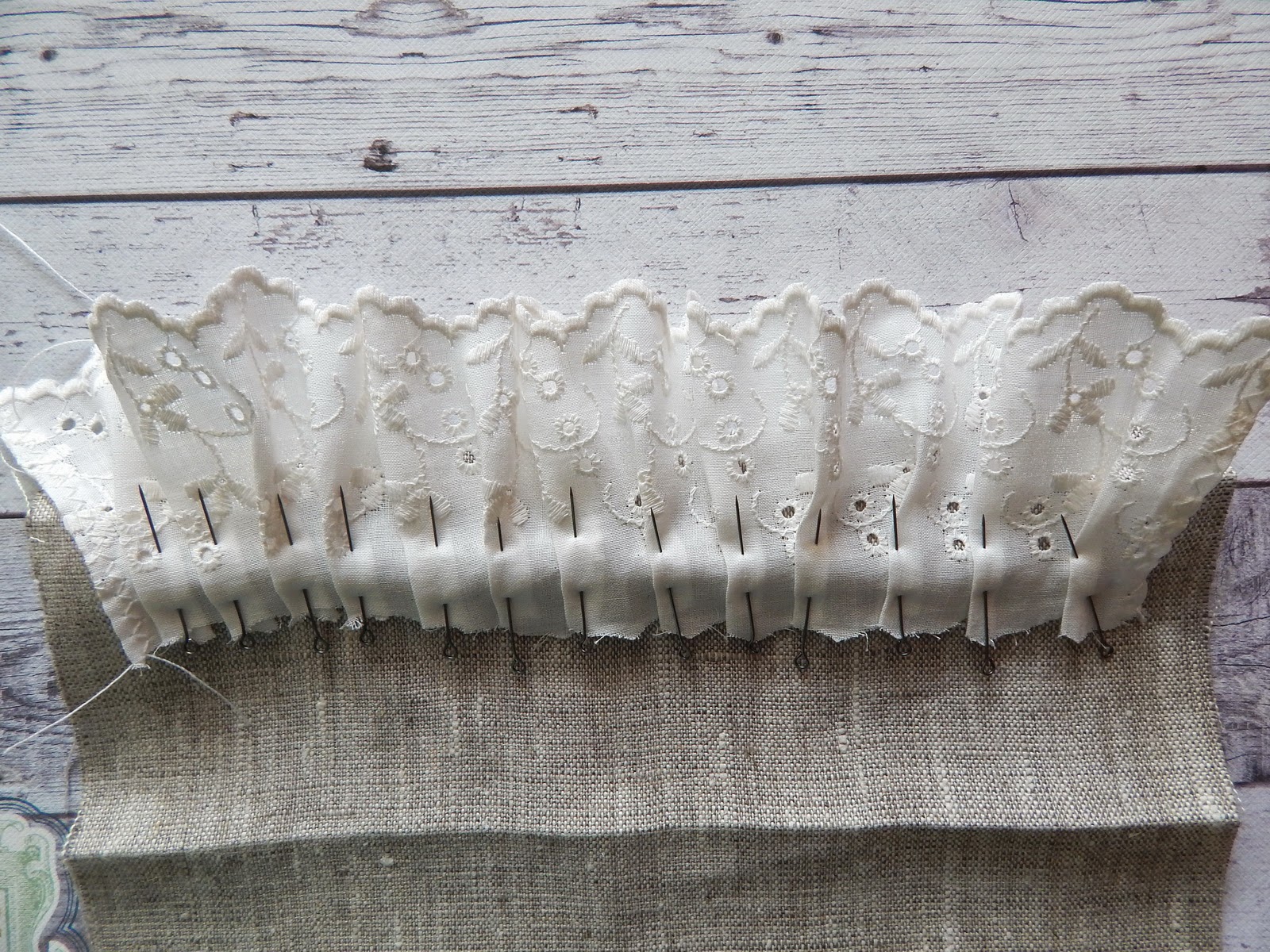 5. Начинаем приметывать кружево. Я это делала булавочками. Вы, если хотите, можете наметать нитками.