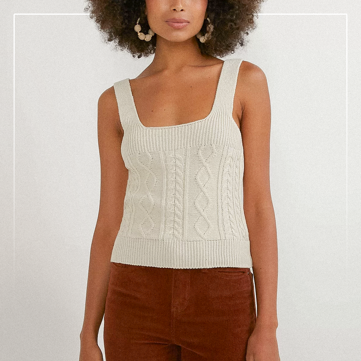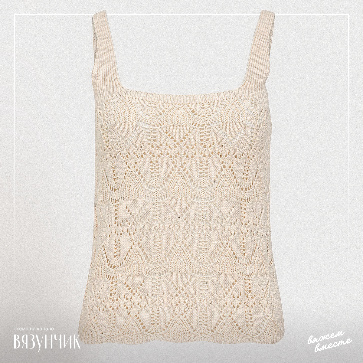 Если вы не любите ажур, вот еще одна модель из того же магазина. Принцип вязания похож, за исключением момента с бретелями. Они не сужаются, а связаны прямо как спереди, так и сзади.