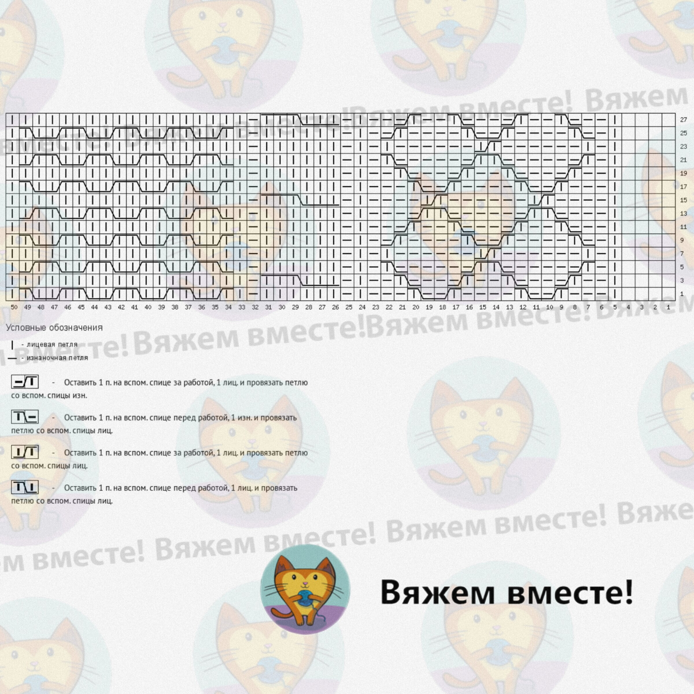 На схеме нарисовала только правую половину узора, левая вяжется симметрично правой.