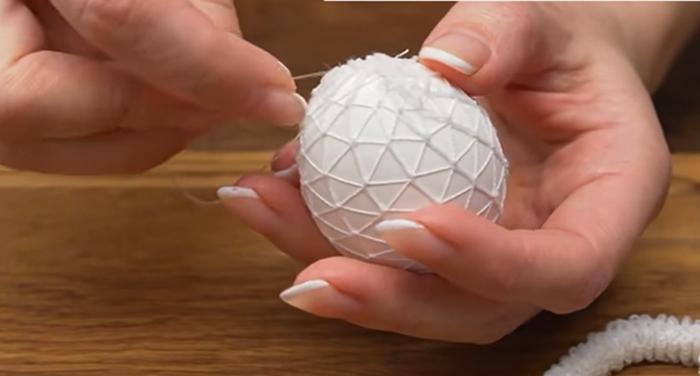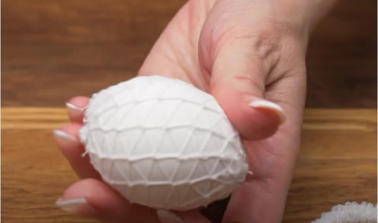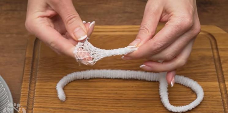 Надетый на яйцо бинт необходимо зашить с двух сторон.