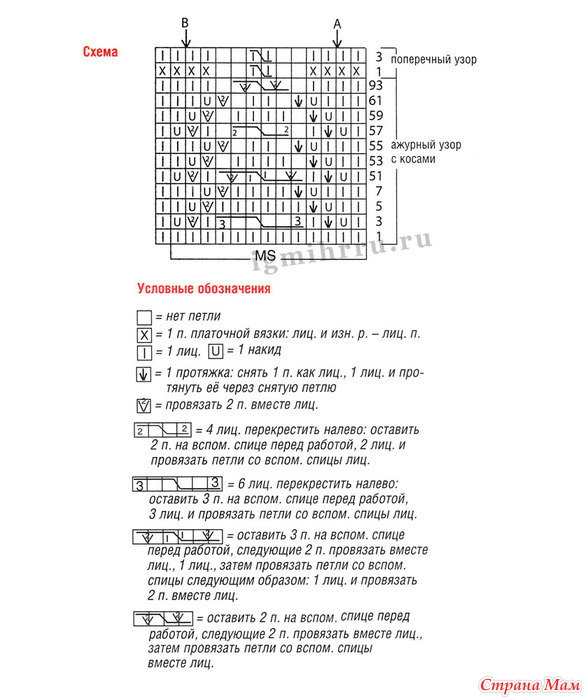 Ажурный узор с косами: 21 п. и 27 р. = 10 х 10 см;