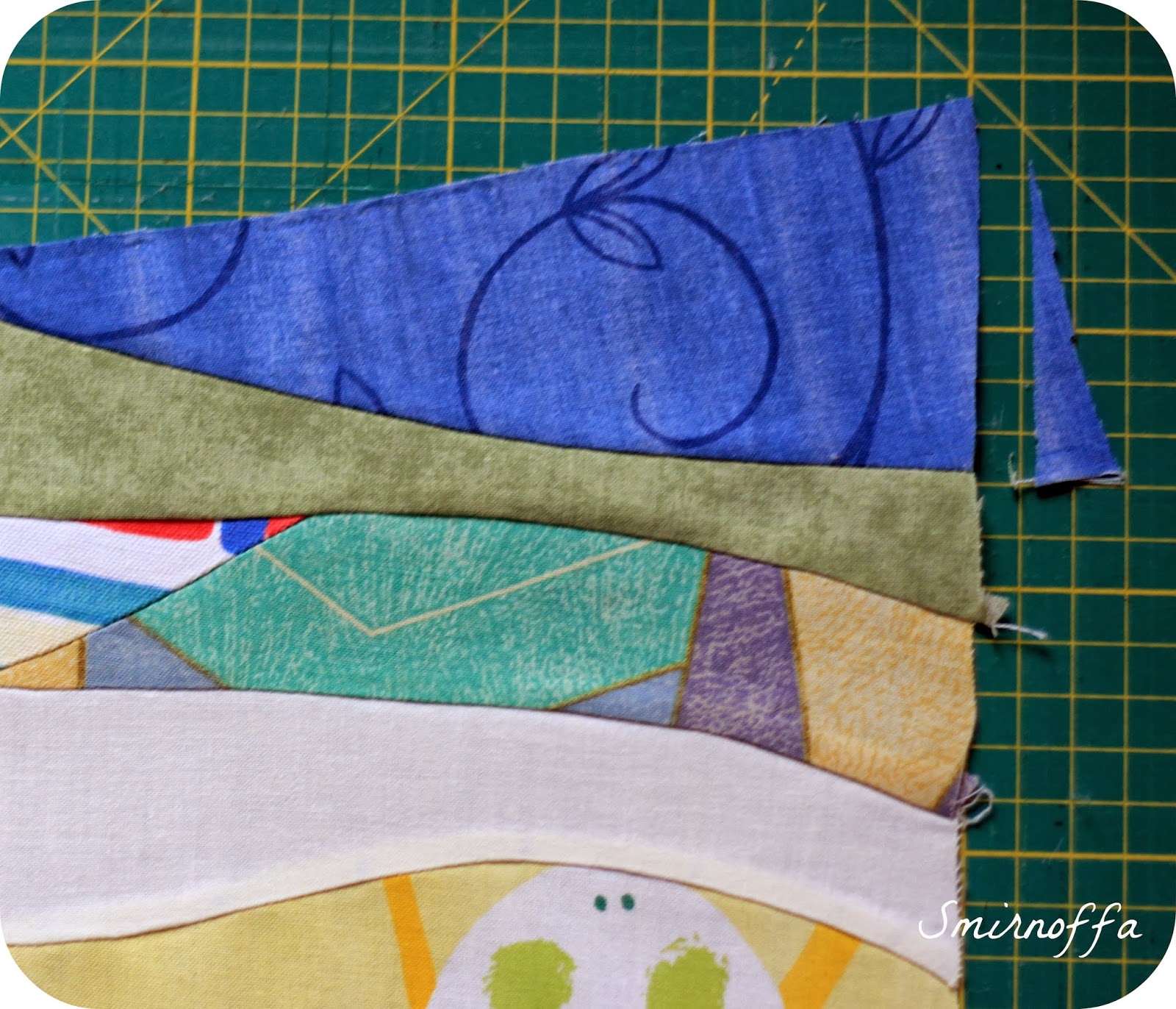 Поэтому пришили кусочек, выложили полотно ровненько на мат, лишние хвостики обрезали.