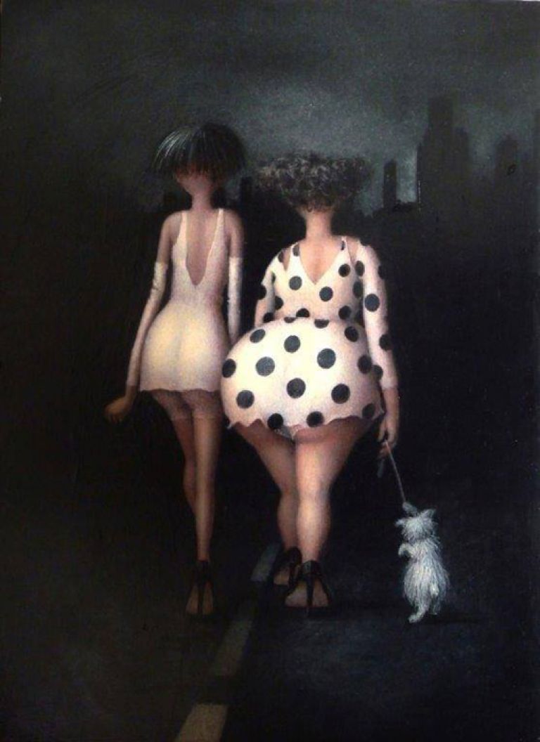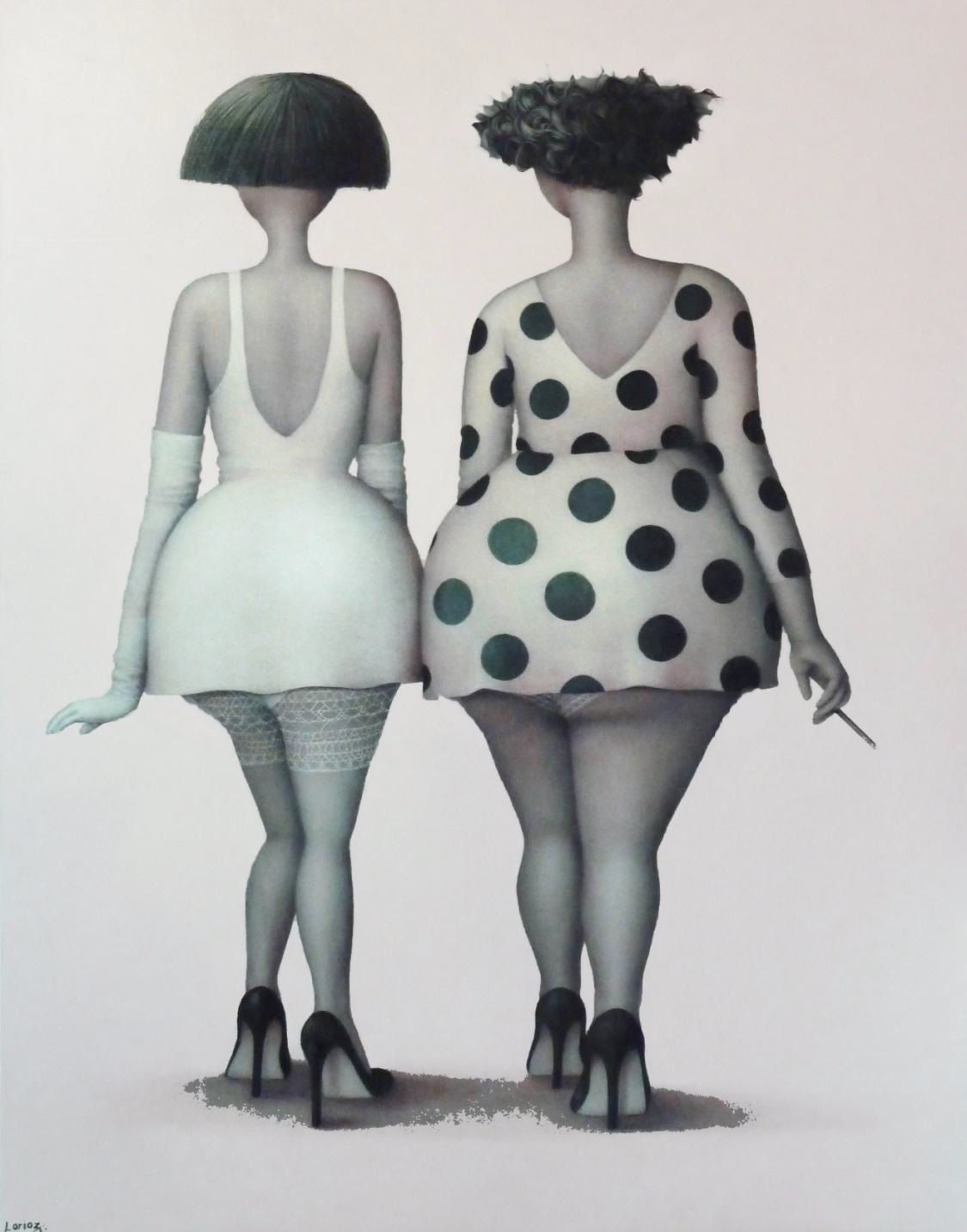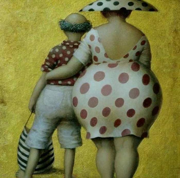 Французская художница Жанна Лорьоз - Jeanne Lorioz - выпускница парижской Школы искусств. Пышнотелые женщины Жанны Лорьоз живут интересной жизнью и дышат полной грудью. К примеру, также ходят по магазинам, принимают ванну, едят и выпивают, танцуют и гуляют по городу, заботятся о домашних животных, делают все что им по душе. И иногда частенько рядом с их могучими фигурами можно увидеть маленькие фигурки сопровождающих мужчин. Художница нам показывает, насколько самодостаточной может быть женщина, даже обладая лишним весом и непропорциональной фигурой.