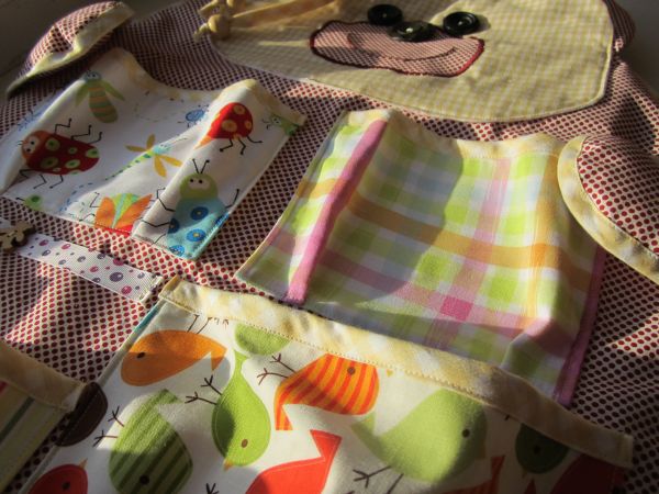 Крепится на завязках. Обратная сторона из американской фланели, она такая нежная.