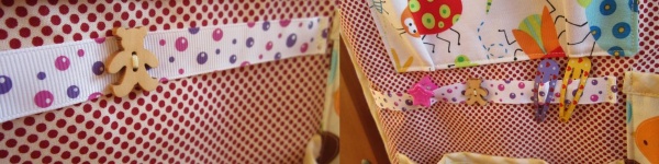 Пришила репсовую ленточку, на нее можно вешать заколочки: