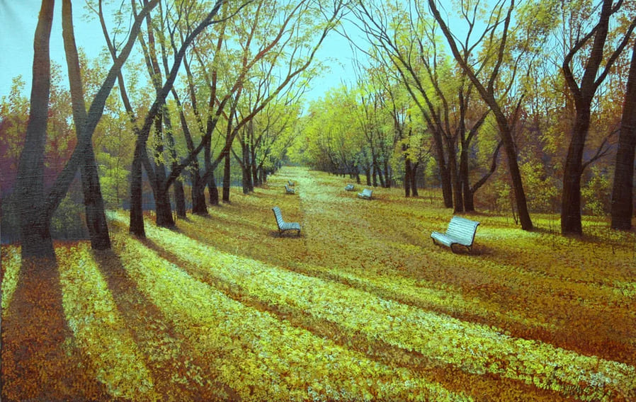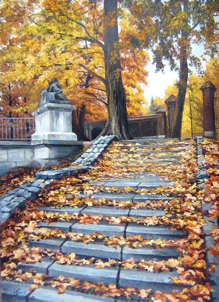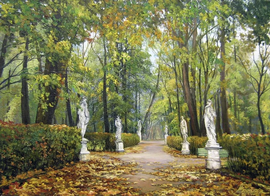Рассматривая мои картины, попадаешь в прошлое. Знакомые с детства уютные питерские улочки и площади кажутся, почему-то, еще милее и прекраснее. Теплый свет фонарей, причудливые изломы теней на мостовой, величавые здания и склоненные ветви деревьев, ждущие дождя… Кажется, услышишь сейчас цоканье лошадиных копыт или дребезжанье первого трамвая.