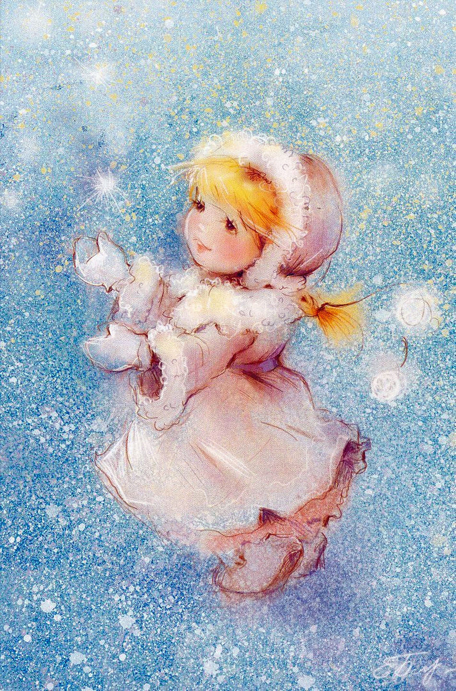 РастровоДевочкоФеечковое - здесь Catherine Babok/Екатерина Бабок (Беларусь, 1969) РастровоПредНовогоднее (часть-3) Время чудес приближается к городу. Снежный декабрь застыл в ожидании. Сказочный дед улыбается в бороду Тройкам оленей диктуя задания: «Вы довезите до всех, что заказано: Деньги, любовь, море счастья и радости, Тонны открыток с душевными фразами. Детям – игрушки, мультфильмы и сладости» Пусть в каждом доме найдется под елкою То от чего сердце дрогнет мечтательно… Небо искрится снежинками колкими – Счастье нам год принесет обязательно! (© Copyright: Катерина Ивашкова, 2006) Екатерина Бабок – современный талантливый известный белорусский художник, создающий интересные акварельные иллюстрации к сказкам и детским рассказам, поздравительные открытки. Екатерина Бабок родилась 4 января 1969 года в Минске. Любимым делом занималась с раннего детства Рисовала везде, где было свободное место, даже на краешках газет. Рисовала не то, что видела, а то, что прочитала. И если не нравилась концовка книжки, она ее переделывала, рисовала свою историю и свой финал. С мужем и дочкой В детстве очень любила читать. В 1991 году окончила художественно-графический факультет Витебского государственного педагогического института (ныне Витебский государственный университет имени П. М. Машерова). В настоящее время художница живет и работает в городе Минске. Некоторые считают, что писать или рисовать для детей легче. Не верьте таким людям. Это для взрослых творить просто, потому что ответственности никакой. Писатель или художник, работающий для детей, должен осознавать, что именно он формирует не только вкус, но и будущее маленького человека. И в основе его работ для детей должна быть настоящая доброта. У Екатерины много чудесных работ, которые любят не только дети, но и взрослые. Прелестная дочь Екатерины со своими друзьями преподносит ей сюжеты для работ. Дети для неё - неисчерпаемая тема и она рисует детство нежно, по-доброму. Мягкие пастельные тона создают атмосферу лёгкости и солнечного света. Её работы возвращают нас в волшебный мир детства, в которое все мы хотим вернуться. Художница не рисует то, что не соответствует ее моральным убеждениям. Екатерина создала чудесную коллекцию феечек, маленьких помощниц, добрых волшебниц, которые живут где-то рядом, и стараются принести в нашу жизнь немножко чуда и радости. Наборы вышивки российской компании «М. П. Студия» по мотивам иллюстраций Екатерины Бобок пользуются особой популярностью у вышивальщиц. Помимо творчества, Екатерина уже около 15 лет занимается практикой цигун, система духовно-физического самосовершенствования по Фалуньгуни и очень любит читать классическую литературу. ВОССТАНОВЛЕННЫЙ ПОСТ ОТ от 01-10-2018