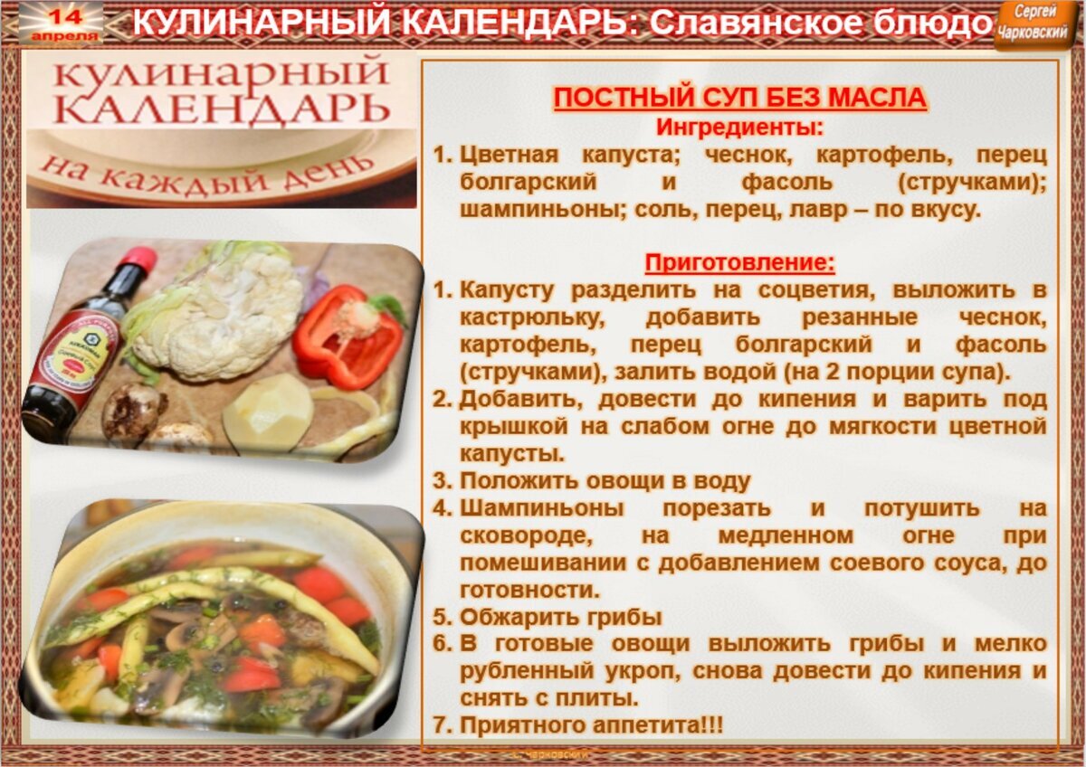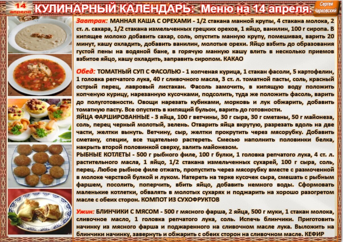 Рецепт дня на 14 апреля.(авт.С.Чарковский)