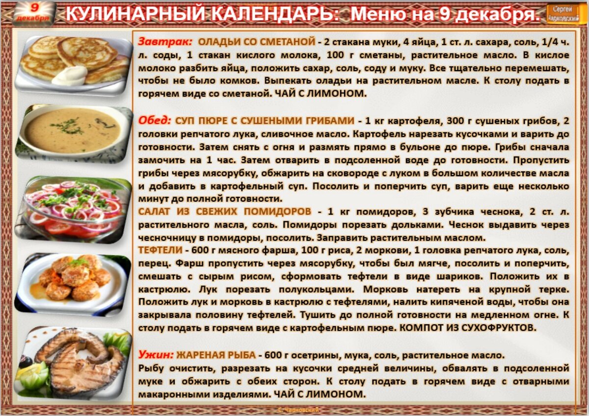 Рецепты дня на 9 декабря(авт.С.Чарковский)