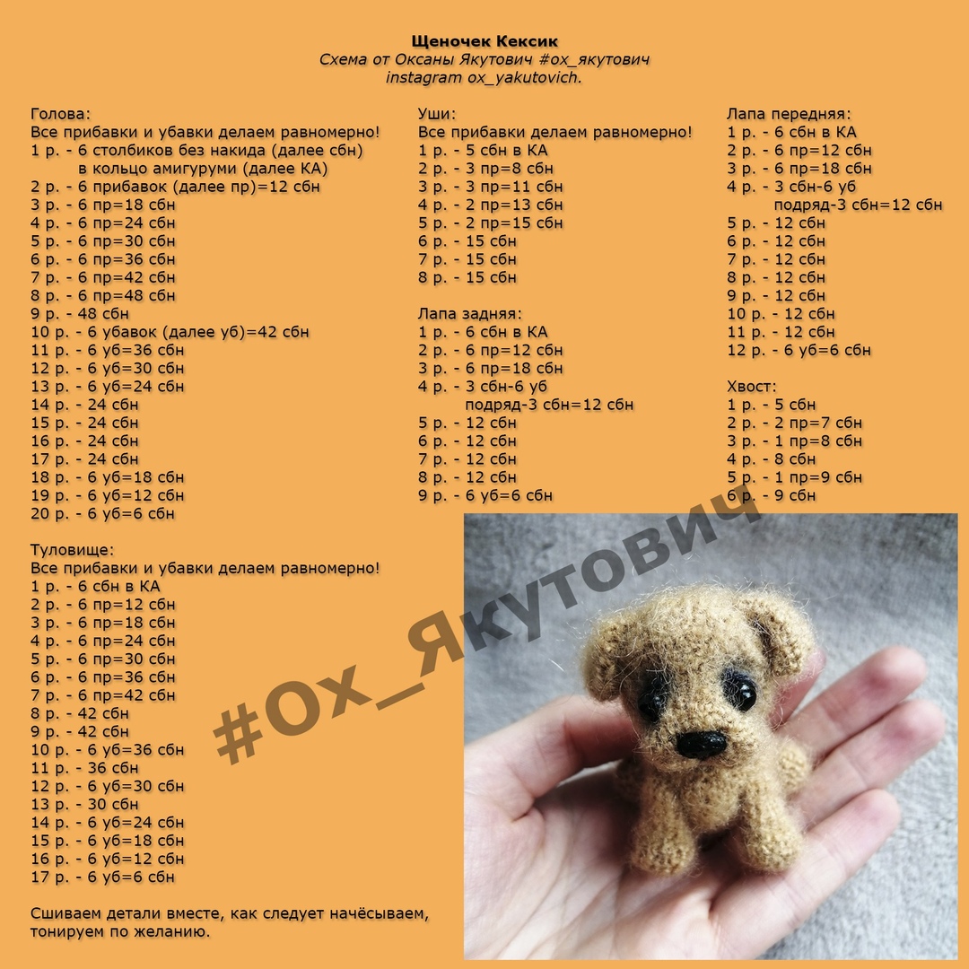 Описание вязания миниатюрной игрушки в технике амигуруми - щеночка Кексика от Оксаны Якутович.