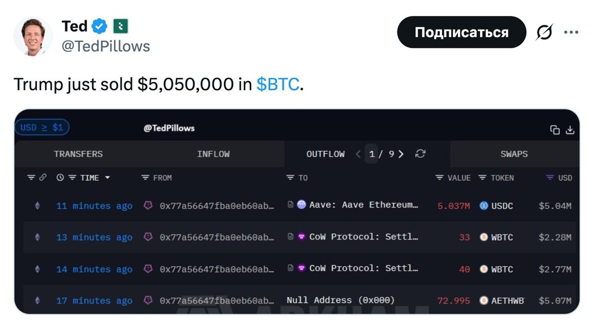Трамп продал вчера Биткоинов на 5 ярдов!