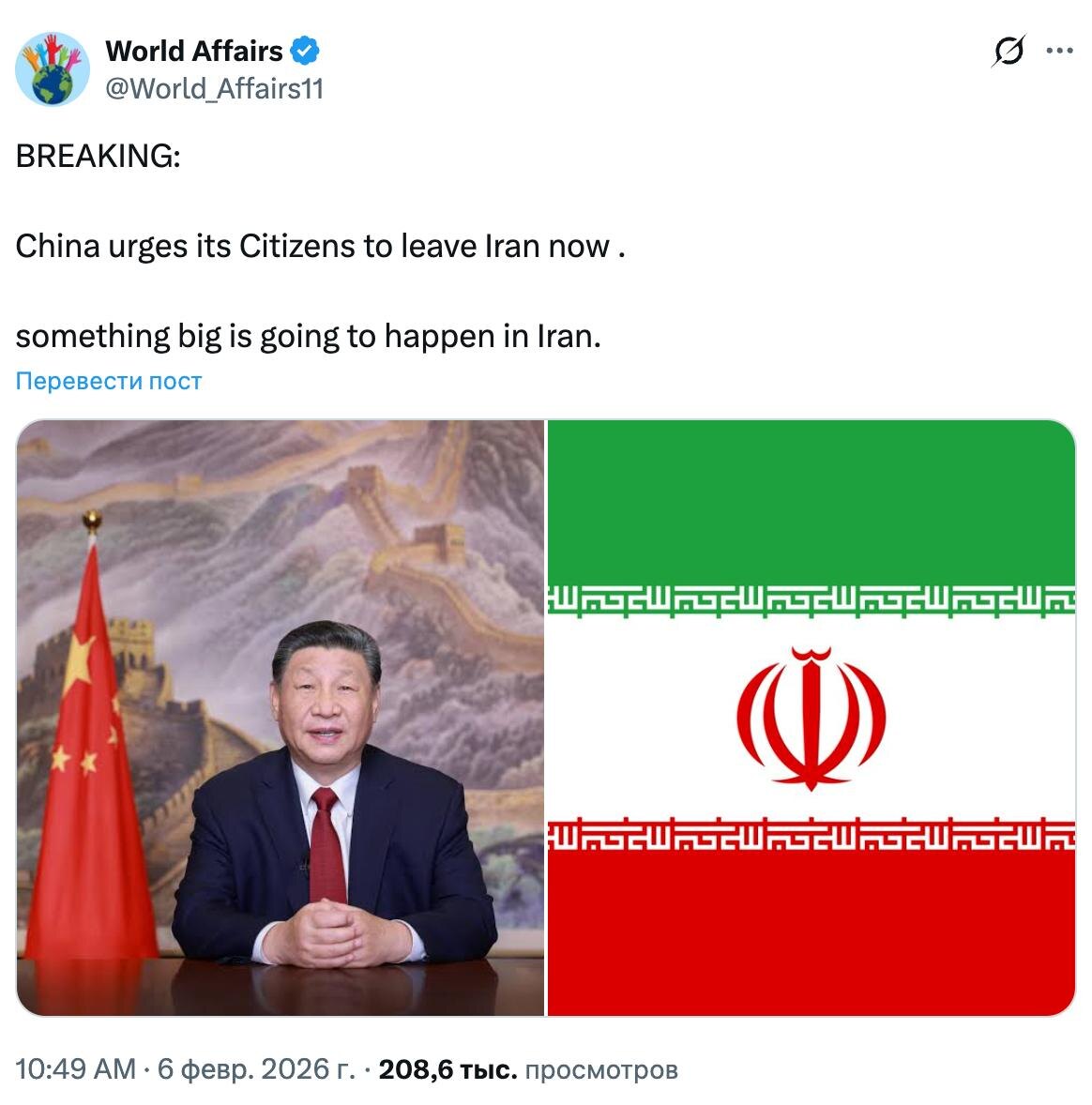 "Китай призывает своих граждан немедленно покинуть Иран"