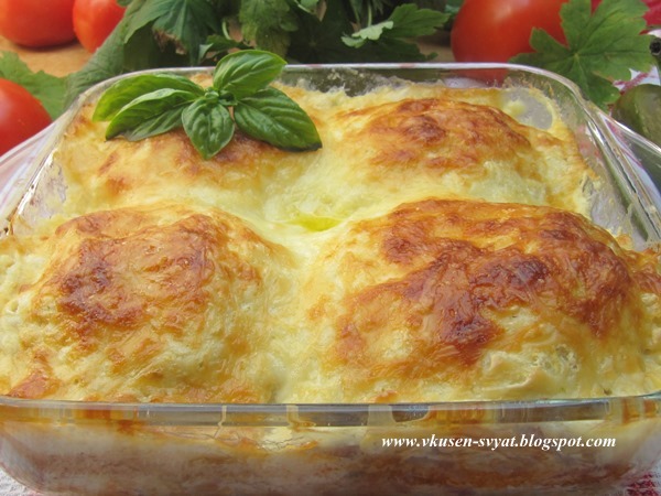 Сервираме ястието с млечно-чеснов сос, кисело мляко или салата от домати.