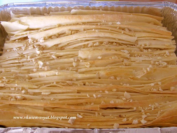 *** Корите, с които се прави сладкишът, трябва да са много пресни и меки, иначе просто няма да се получи.