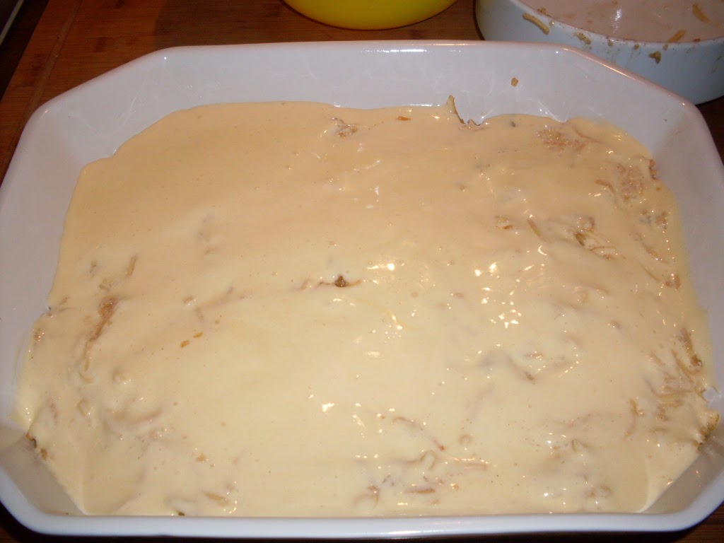 Към жълтъците добавих постепенно и с постоянно разбиване с миксер - прясното мляко, захарта, без 3 супени лъжици, ванилията и брашното, което преди това бях пресяла с бакпулвера.