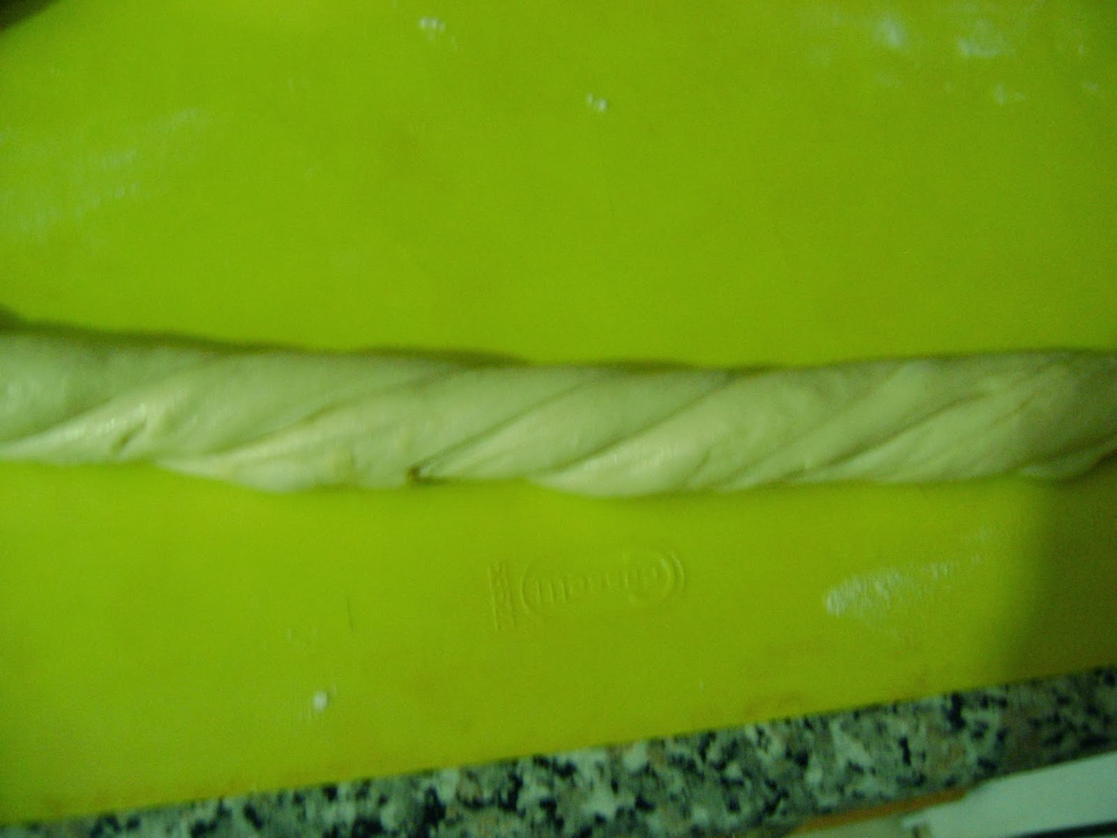 Вземаме една топка и върху съвсем леко набрашнения плот с ръце оформяме фитил с дължина около 70 см.