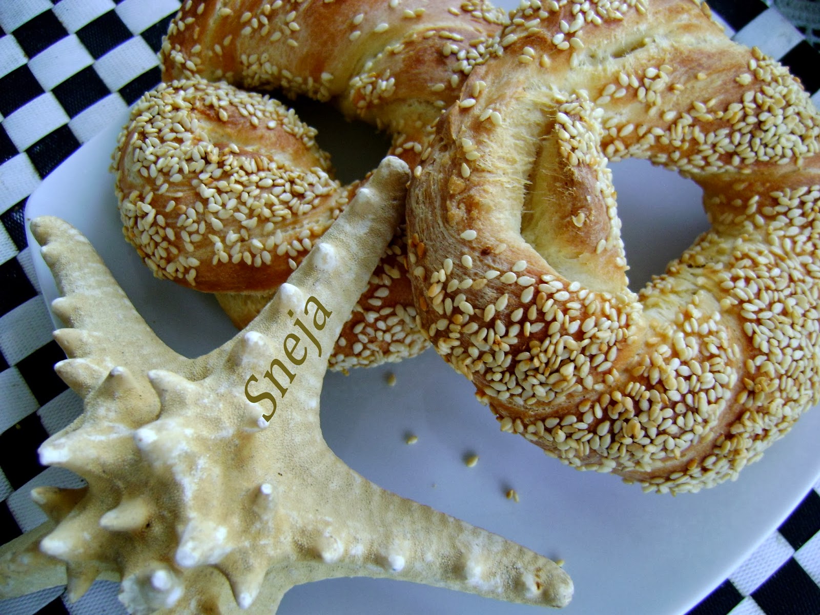 Слагаме във фурната и включваме на 200 градуса.Печем около 20-25 минути.Вадим готовите гевреци върху скара да поизстинат леко.