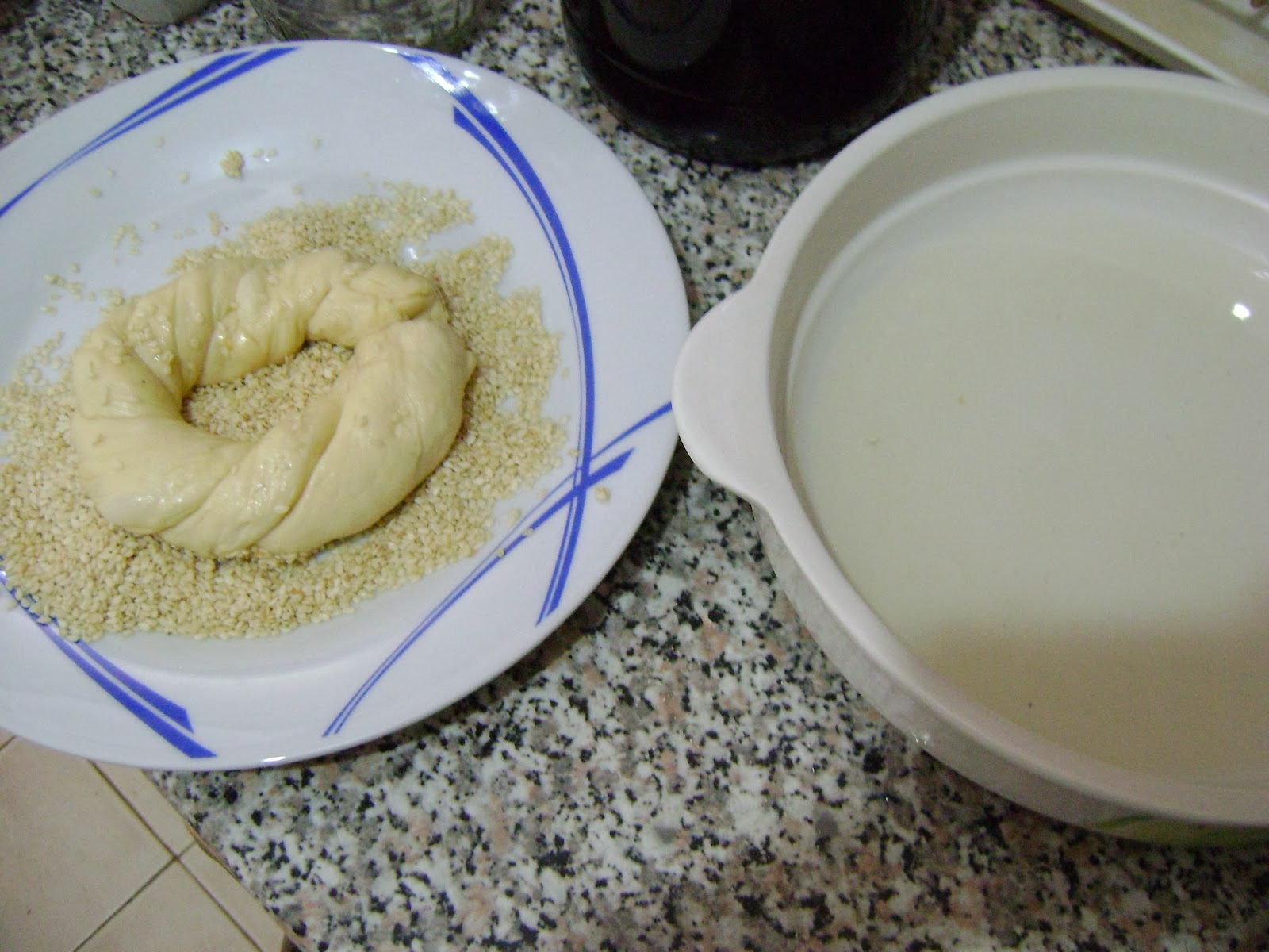 В по-дълбока чиния изсипваме сладкия сироп,а в друга - сусама.