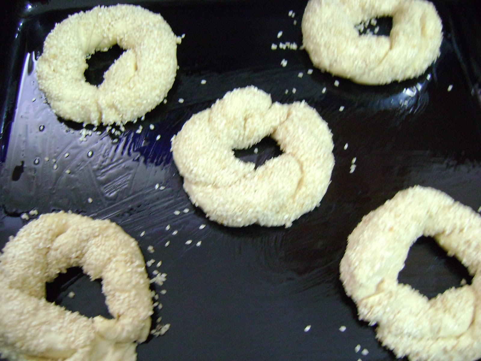 Нареждаме готовите гевреци в намазана с олио тава на разстояние едно от друго.