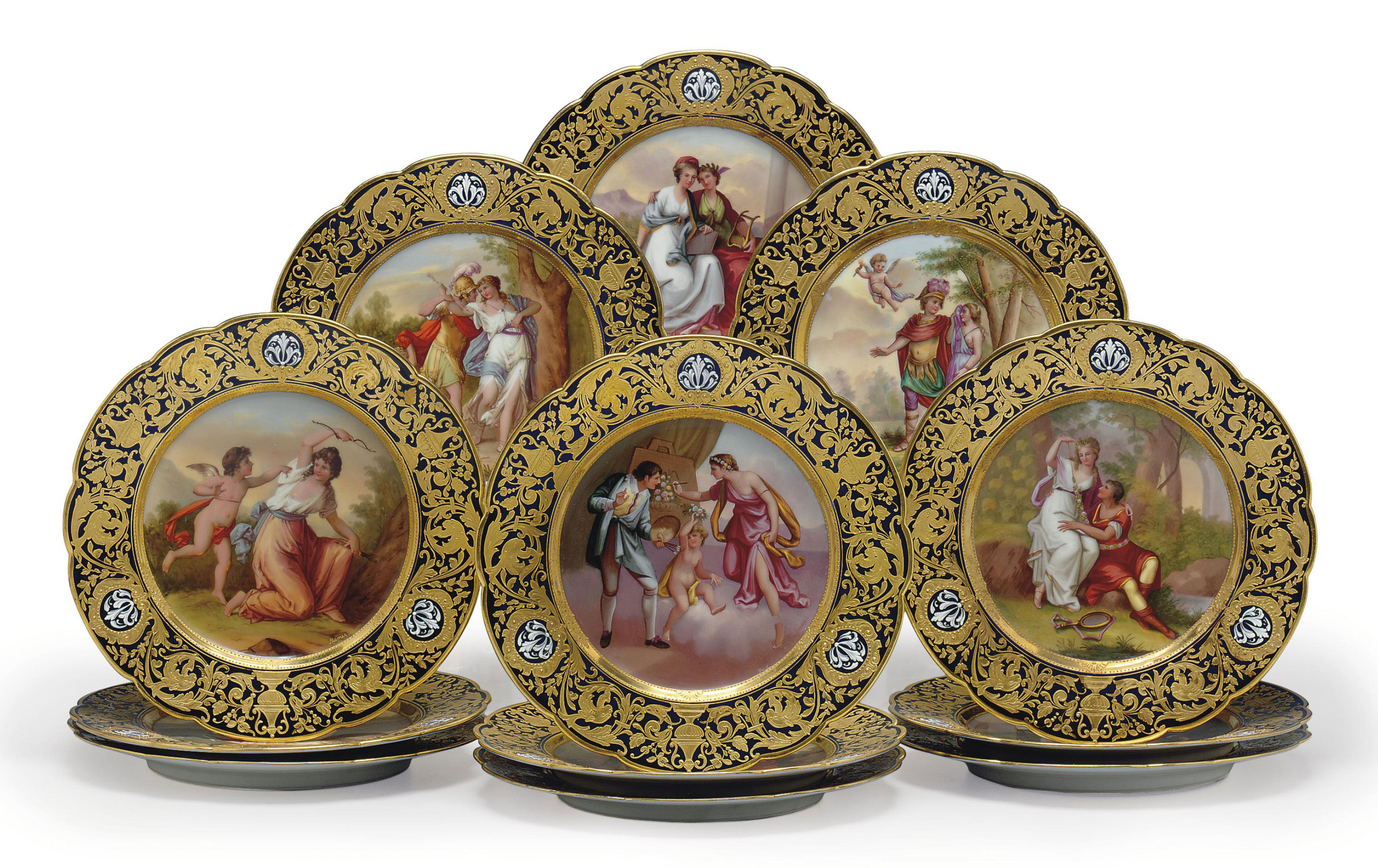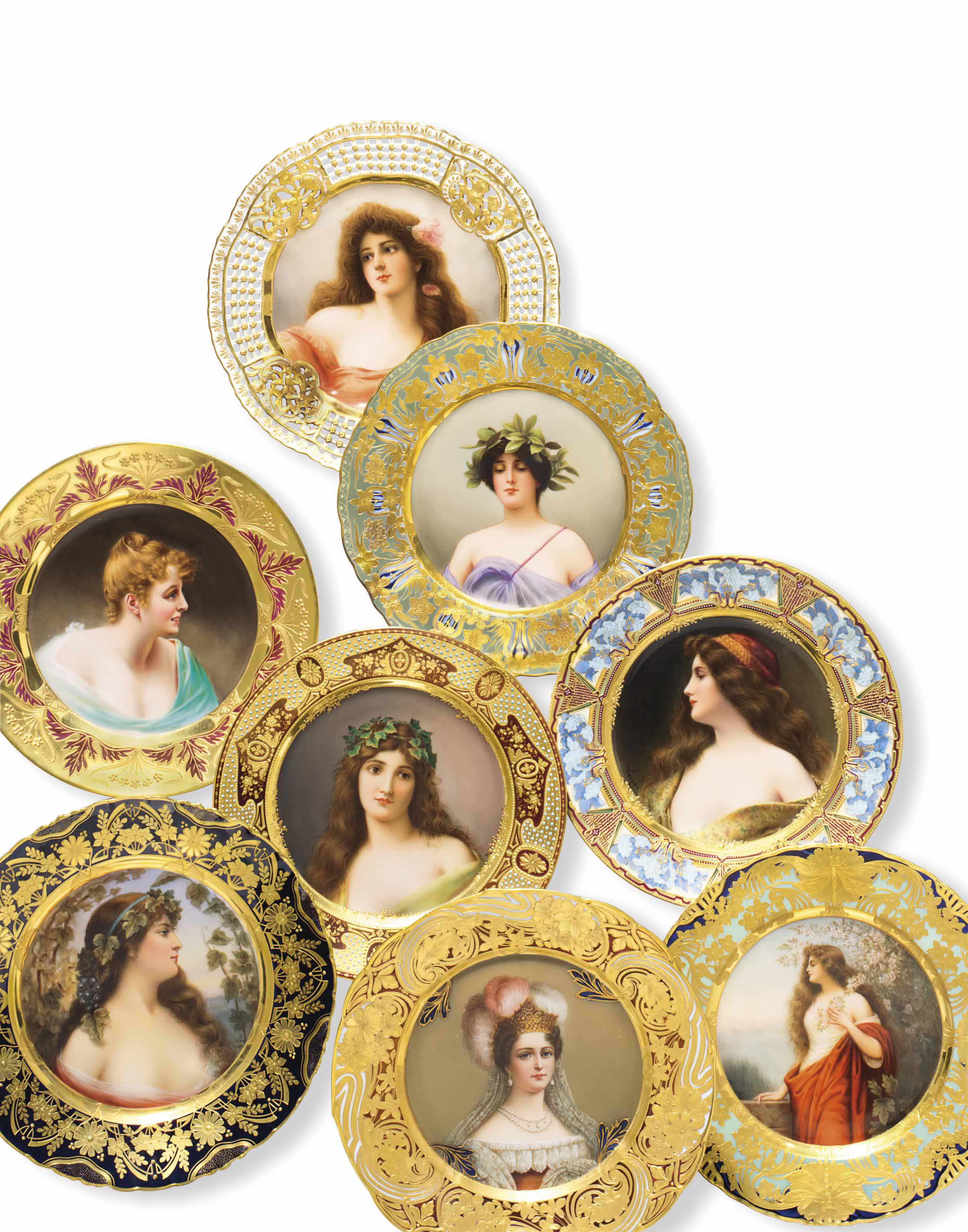 ÑÅÌÜ ÔÀÐÔÎÐÎÂÛÕ ÒÀÐÅËÎÊ Ñ ÊÎÁÀËÜÒÎÂÎ-ÑÈÍÈÌ, ÁÎÐÄÎÂÛÌ È ÎËÈÂÊÎÂÎ-ÇÅËÅÍÛÌ ÏÎÊÐÛÒÈÅÌ Â ÂÅÍÑÊÎÌ ÑÒÈËÅ (HUTSCHENREUTHER)