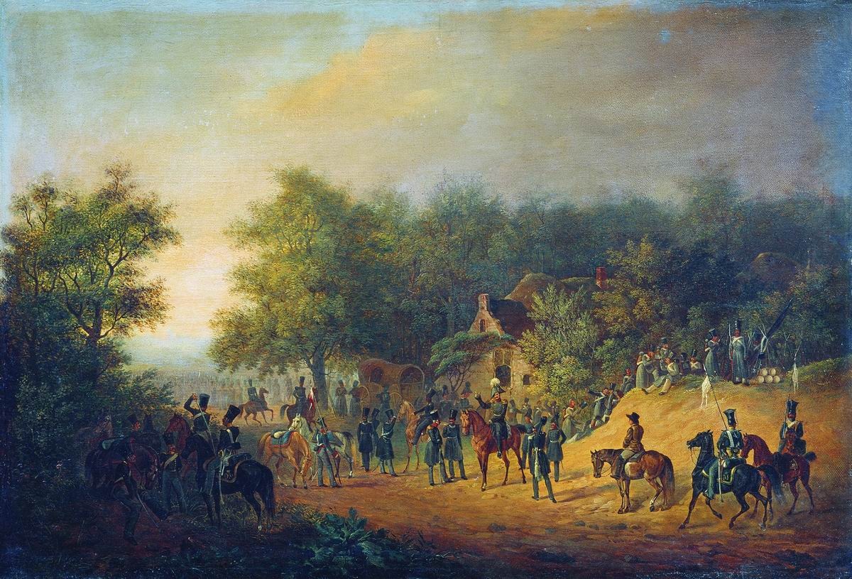 "На манёврах", 1849 г. Из собрания Серпуховского историко-художественного музея.