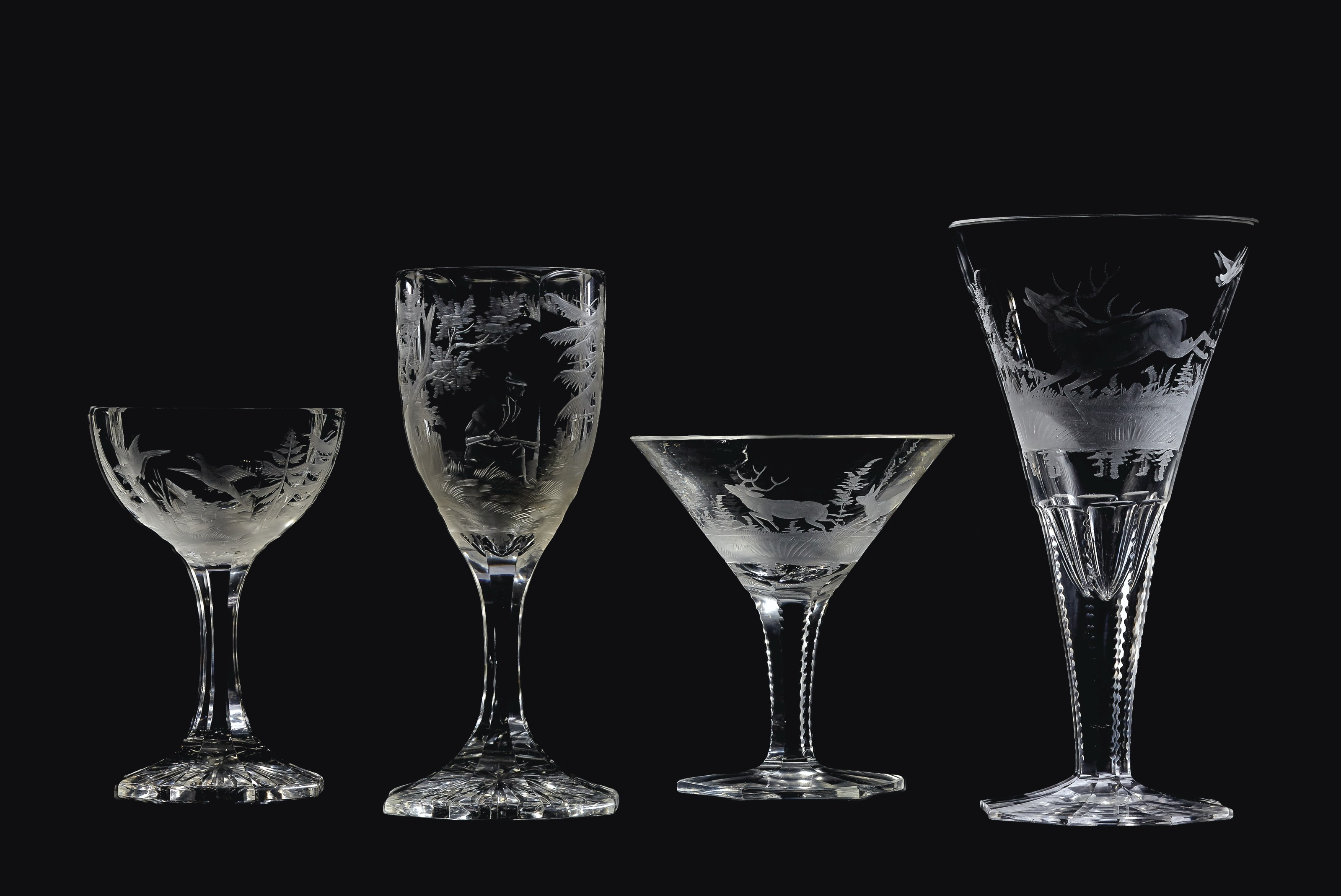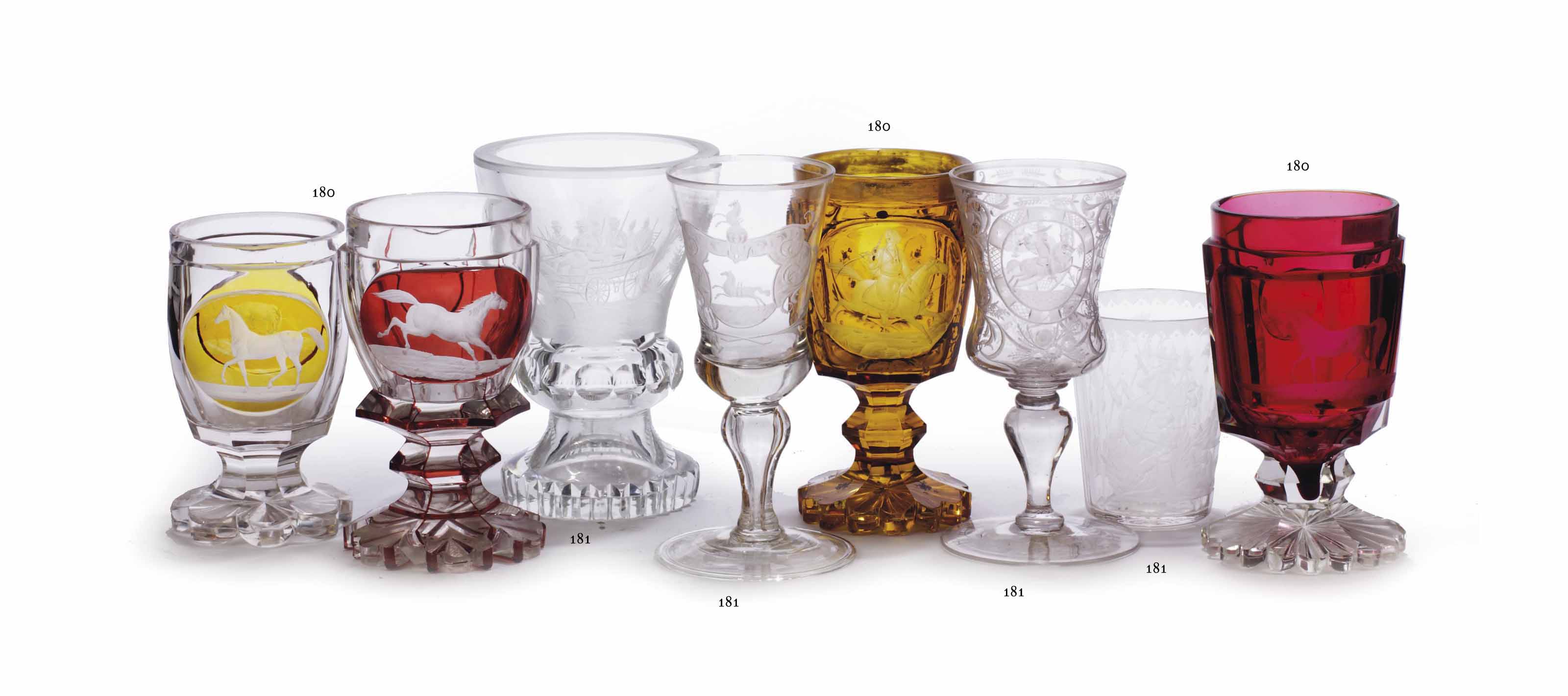 ×åòûðå ðàçëè÷íûõ áîêàëà èç áîãåìñêîãî ñòåêëà, óêðàøåííûõ ëîøàäüìè