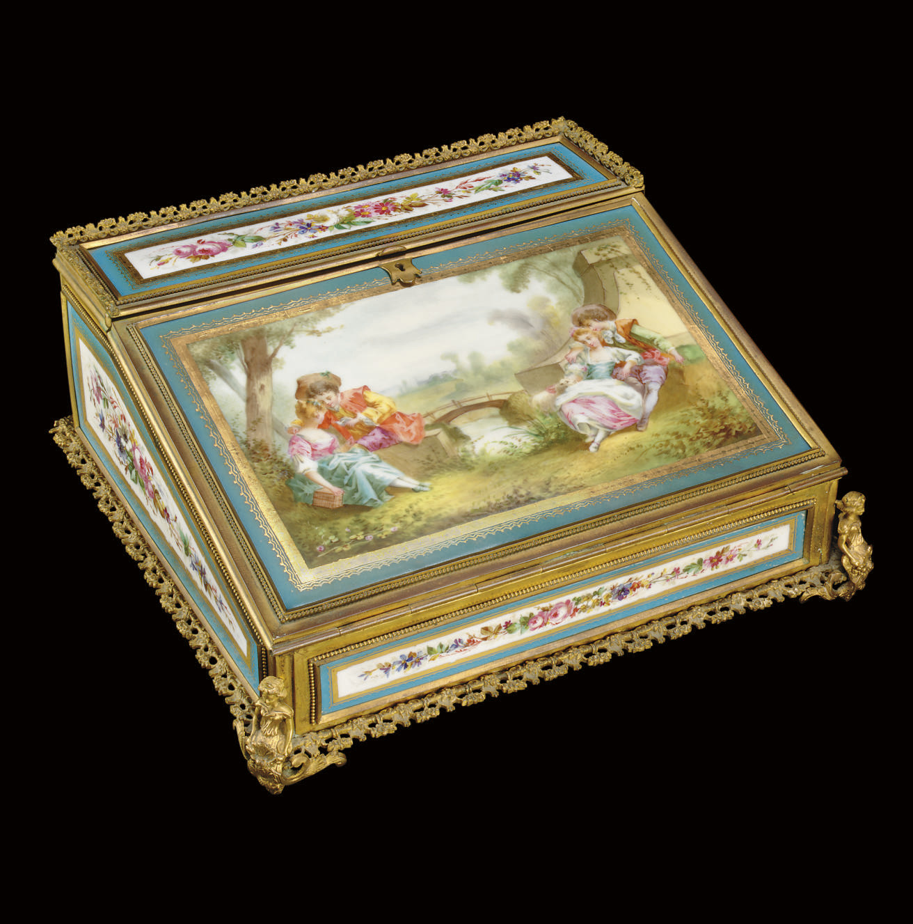 ÏÀÐÀ ÓÊÐÀØÅÍÍÛÕ ÄÐÀÃÎÖÅÍÍÛÌÈ ÊÀÌÍßÌÈ ÂÀÇ È ÊÐÛØÅÊ Äëÿ ÏÎÏÓÐÐÈ ÊÎÁÀËÜÒÎÂÎ-ÑÈÍÅÃÎ ÖÂÅÒÀ  ÑÅÂÐÑÊÎÌ ÑÒÈËÅ Îò ORMOLU ÊÎÍÅÖ 19 ÂÅÊÀ