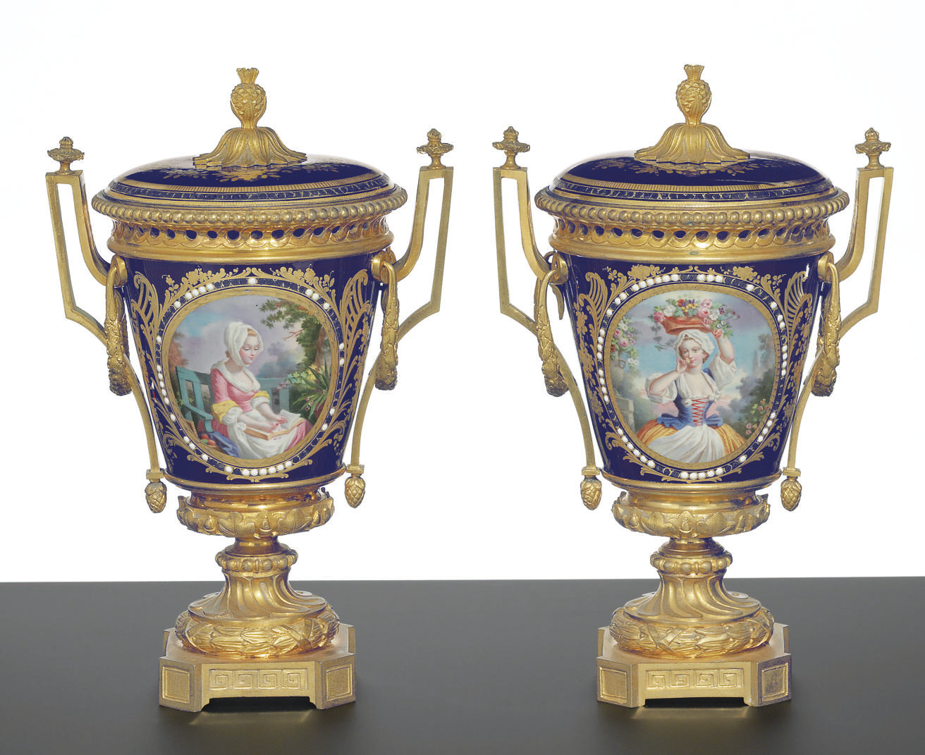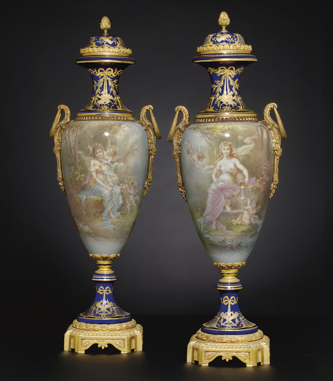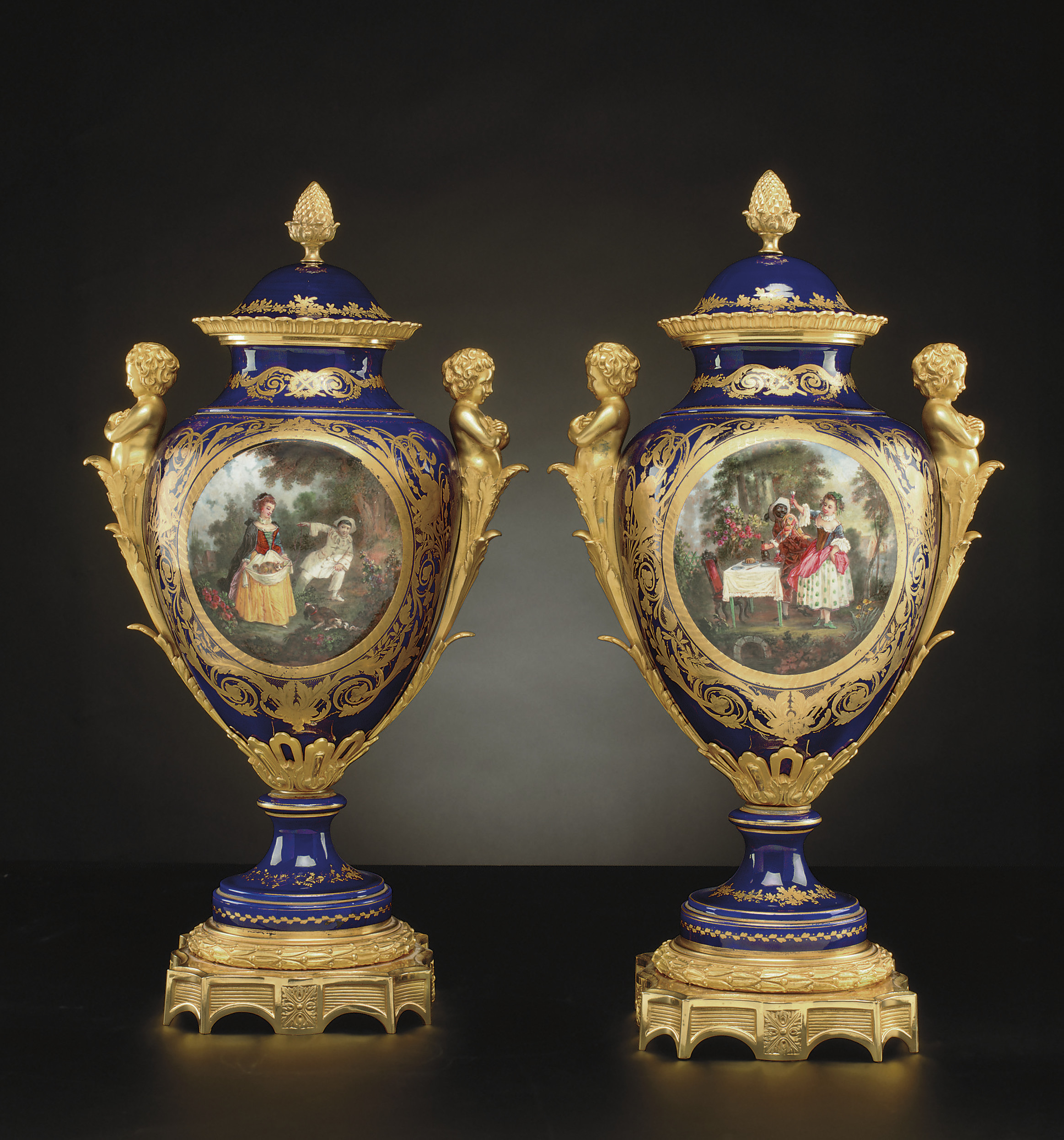 ÏÀÐÀ ÔÀÐÔÎÐÎÂÛÕ ÂÀÇ Â ÑÅÂÐÑÊÎÌ ÑÒÈËÅ Ñ ÊÎÁÀËÜÒÎÂÎ-ÑÈÍÈÌ ÍÀÏÛËÅÍÈÅÌ Îò ORMOLU È ÄÂÅ ÊÐÛØÊÈ
